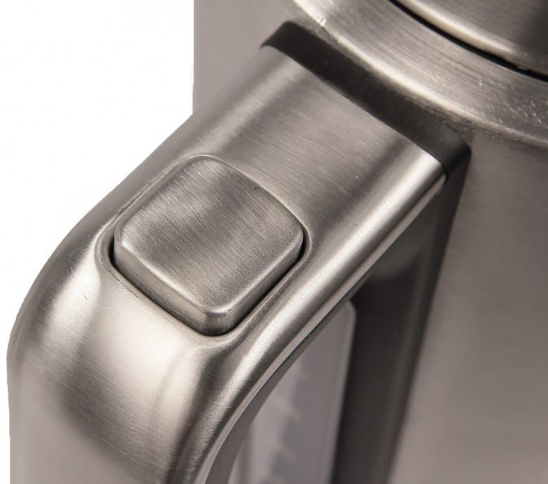 Вставка с градуировкой позволяет отмерить необходимое количество воды (0,5, 0,75, 1, 1,25, 1,5 и 1,7 литра). Подпружиненная крышка чайника открывается (откидывается) с помощью кнопки, расположенной на ручке.