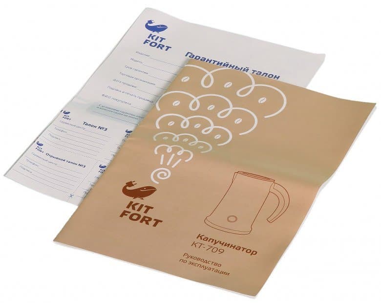 Инструкции Kitfort всегда лаконичны и понятны, имеют форму брошюры А5 и содержат рекомендации по безопасной эксплуатации и уходу, а в конце рекламируются другие товары компании. Несмотря на простоту прибора, с инструкцией ознакомиться необходимо, так как одна кнопка запускает три разных программы, и нужно знать тайное слово соответствие числа нажатий и программы.