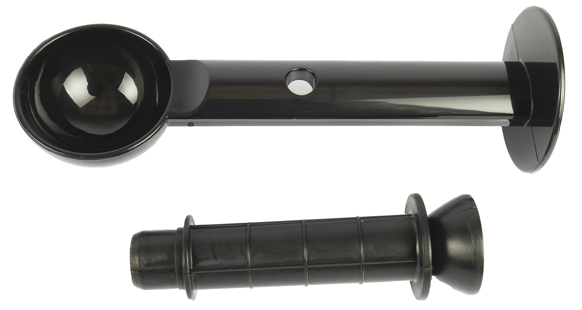 В комплекте мы нашли пластиковую ложку-темпер и миниатюрный насос для воды. Темпер выглядит вполне стандартно. Диаметр темпера (и фильтра молотого кофе соответственно) оказался равным 40 мм. Насос мы тоже уже встречали: его назначение — подать воду внутрь кофеварки в случае, если что-то пошло не так.