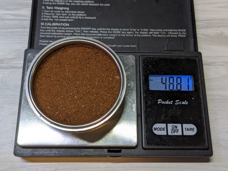 ...и вес стандартной закладки кофе стандартного для помола для эспрессо.