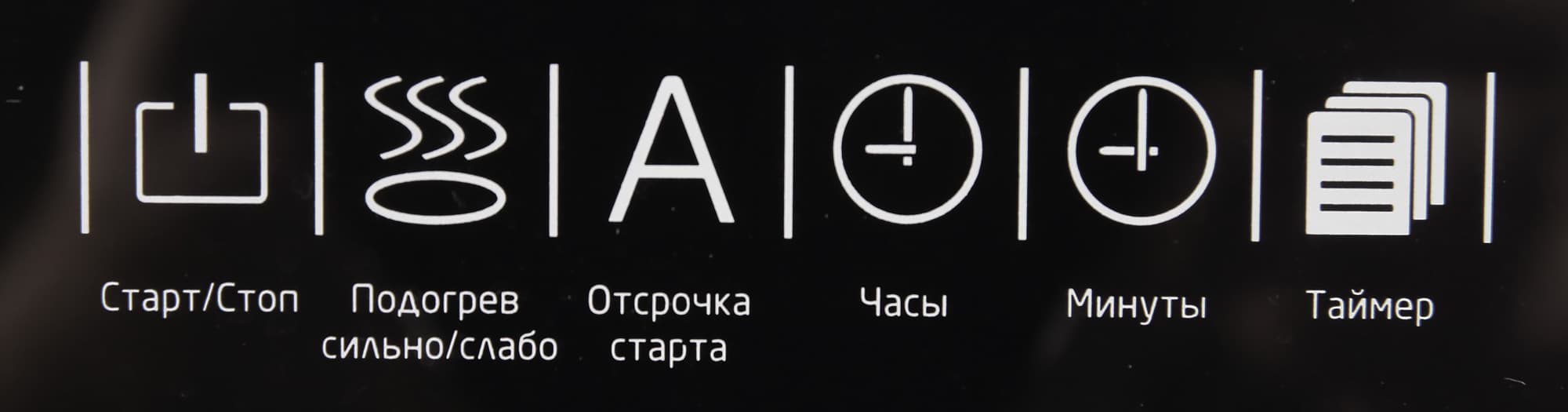 Управление кофеваркой осуществляется с помощью шести сенсорных кнопок, двух синих светодиодных индикаторов и синего светодиодного числового табло.