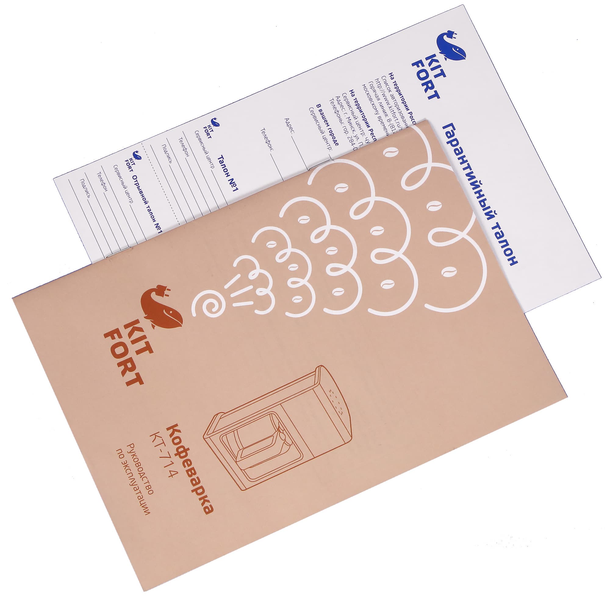 Кофеварка поставляется в коробке из гофрированного картона, оформленной в «кофейных» тонах.
