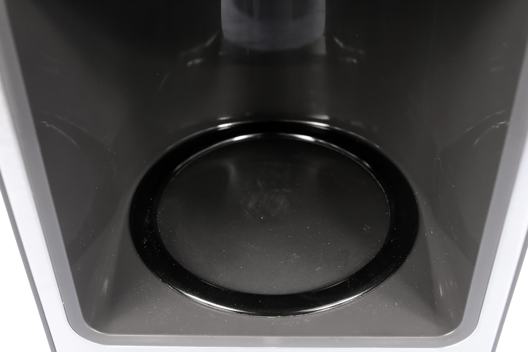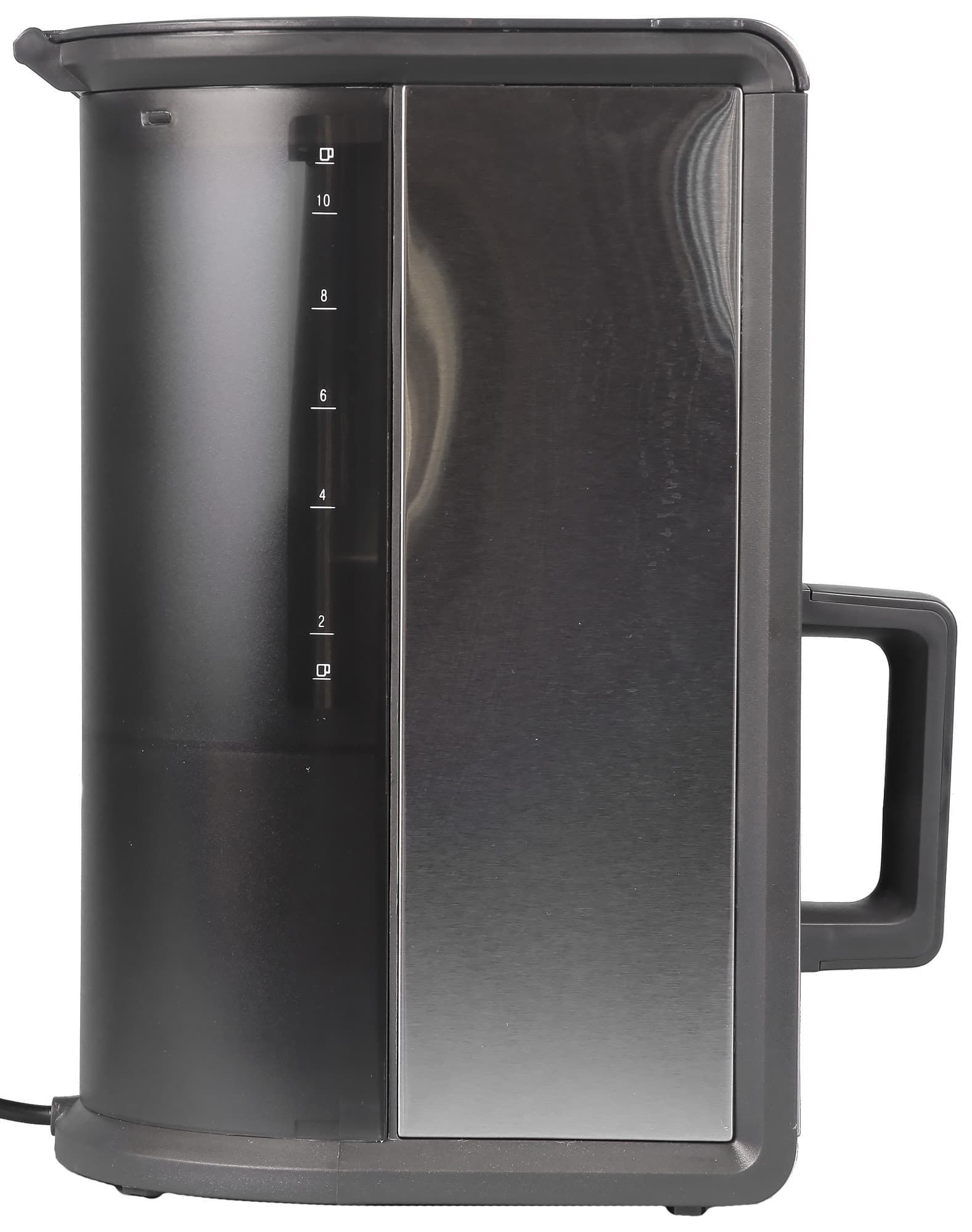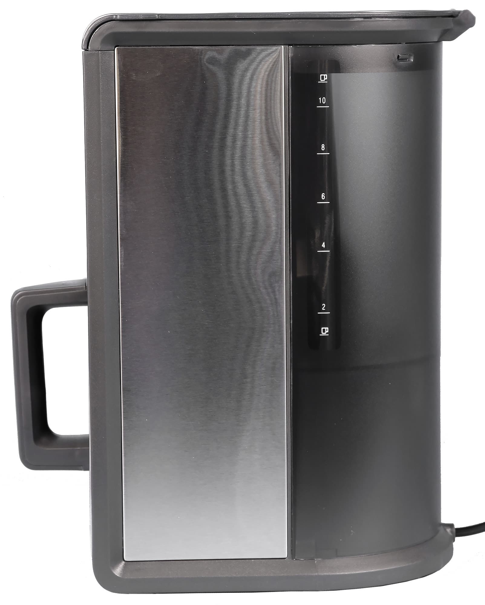 Сзади находится пластиковый полупрозрачный резервуар для воды. На стенки резервуара нанесены отметки, соответствующие 2, 4, 6, 8 и 10 кружкам. Присутствуют также дополнительная риска чуть выше уровня, соответствующего 10 чашкам.