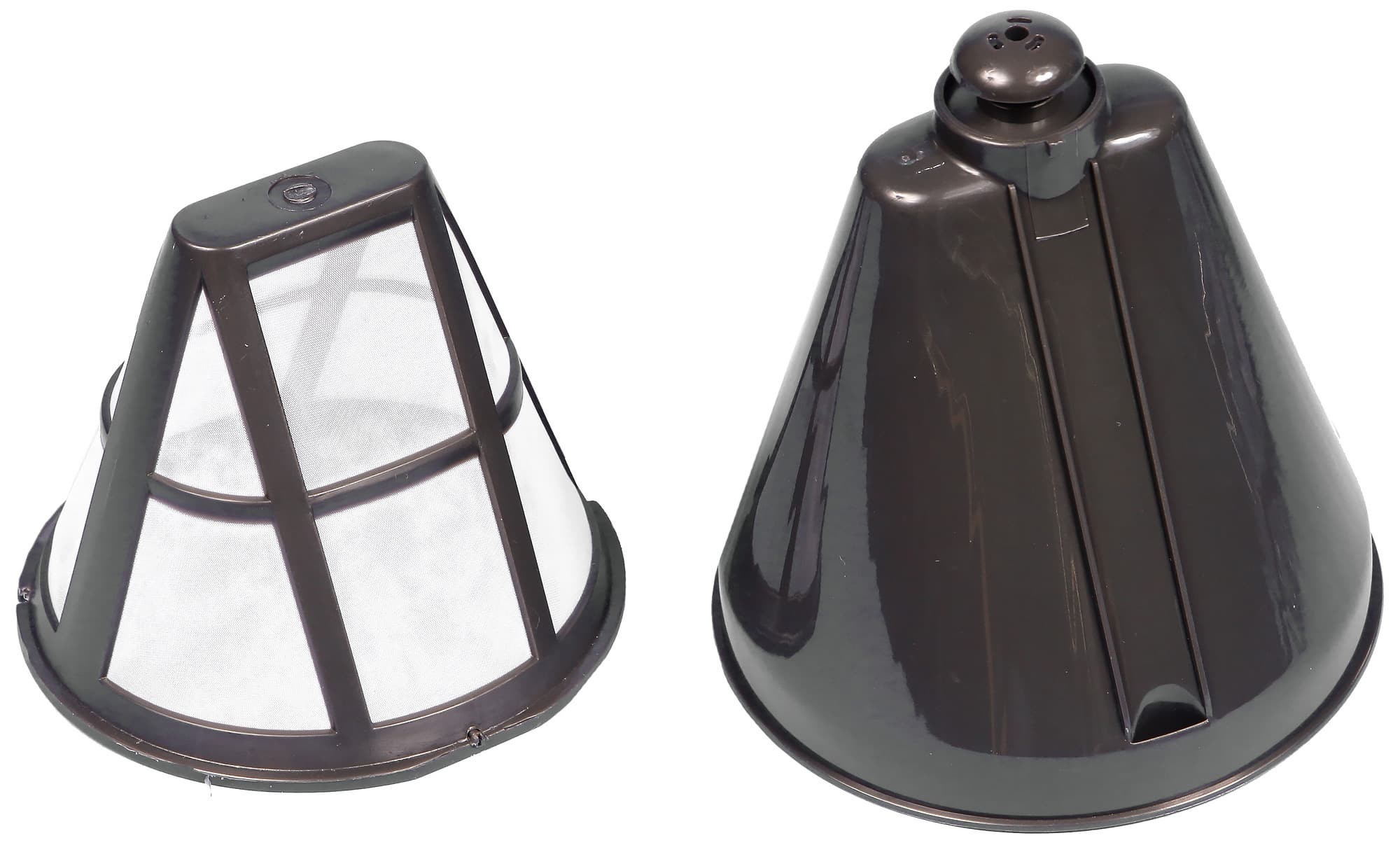 Воронка для кофе устанавливается в правильное положение путем поворота на несколько градусов против часовой стрелки. Снимается она поворотом в противоположном направлении. Для корректной работы прибора в воронку нужно установить фильтр. Можно воспользоваться многоразовым пластиковым фильтром-конусом, который поставляется в комплекте с кофеваркой, а можно купить одноразовые бумажные фильтры. У многоразового фильтра есть отметка max, а также ручка для удобного извлечения.