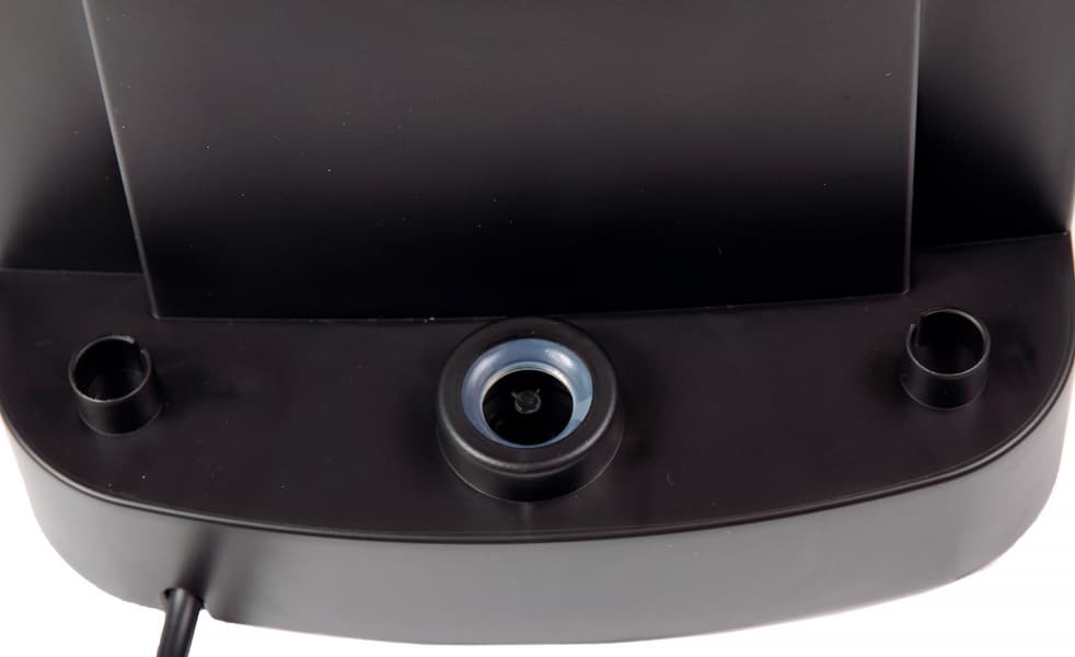 Сзади у кофеварки расположен съемный контейнер для воды. Контейнер сделан из прозрачного матового пластика и оснащен пластиковой крышкой (на этот раз пластик черный). Откинув крышку, можно увидеть перемычку-ручку, за которую можно ухватиться для переноски контейнера. Специальных приспособлений для открывания/закрывания типа доводчиков или защелок у крышки не предусмотрено. Открывается крышка «от себя», а это значит, что для долива воды в кофеварку нам не придется каждый раз извлекать контейнер или подбираться к нему сборку.