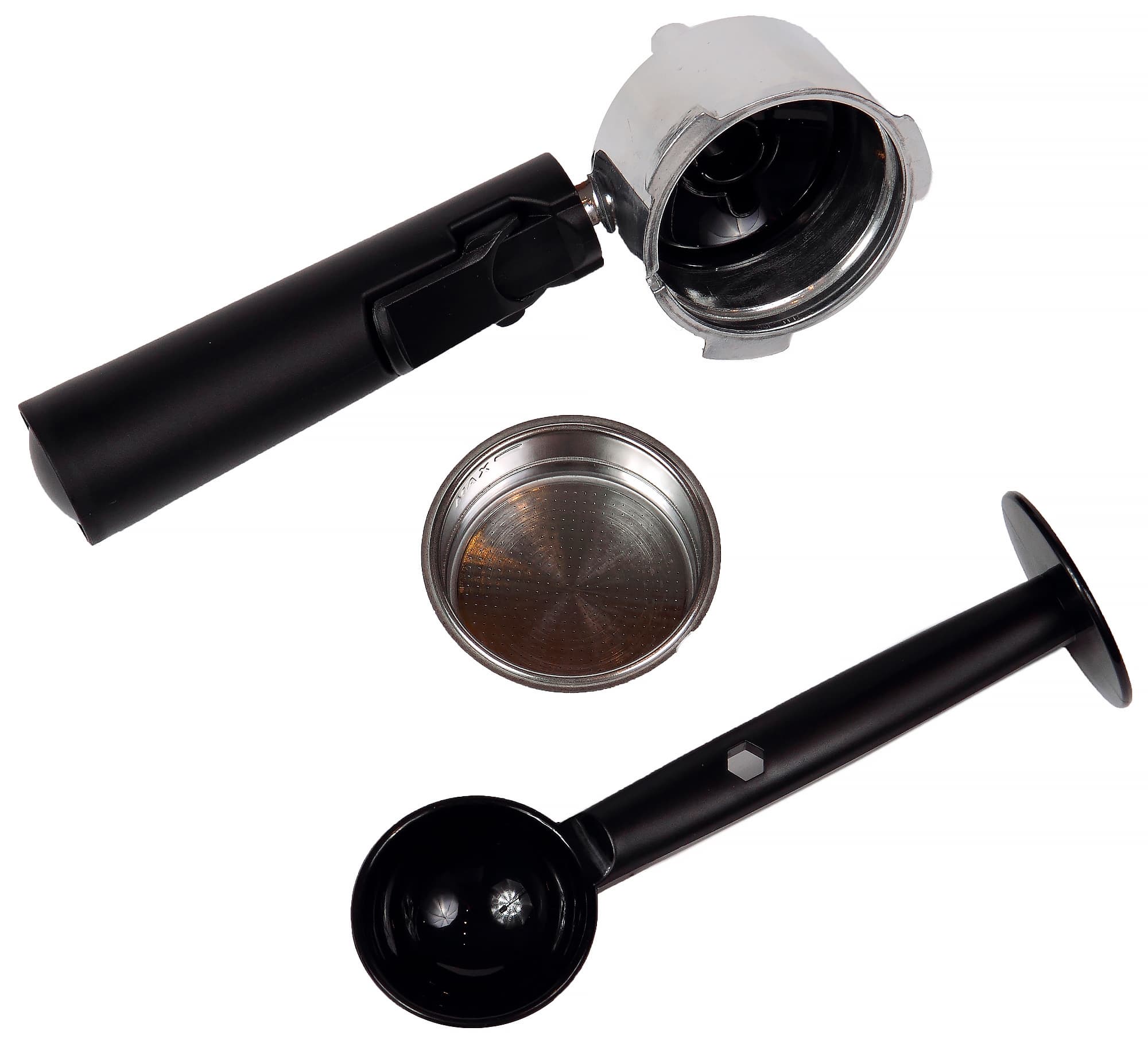 Рожок оснащен специальной ручкой-локером, которая позволяет с легкостью вытряхнуть отработанный кофе, не опасаясь, что вместе с гущей вывалится и фильтр. Помимо этого у фильтра существует собственное крепление, удерживающее его внутри рожка (для этого фильтр нужно вставить в рожок и повернуть на несколько градусов).