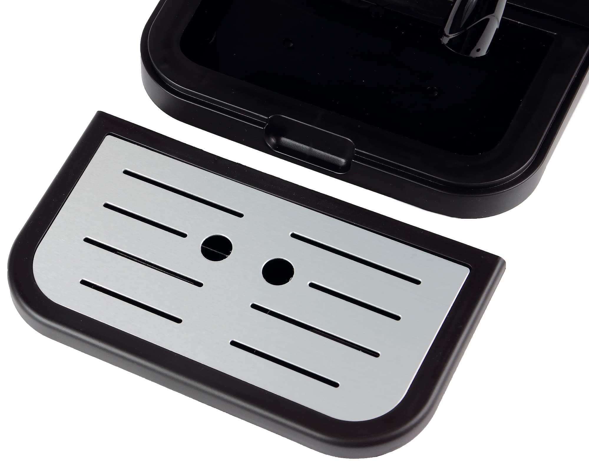 Наконец, поддон для сбора капель без труда извлекается из кофеварки (для этого предусмотрены специальные углубления для пальцев).