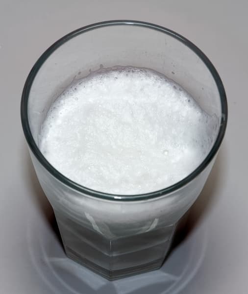 Наконец, мы попробовали приготовить молочную пену. Для этого мы взяли 100 мл молока из холодильника, включили подачу пара в трубку капучинатора и стали наблюдать за процессом.