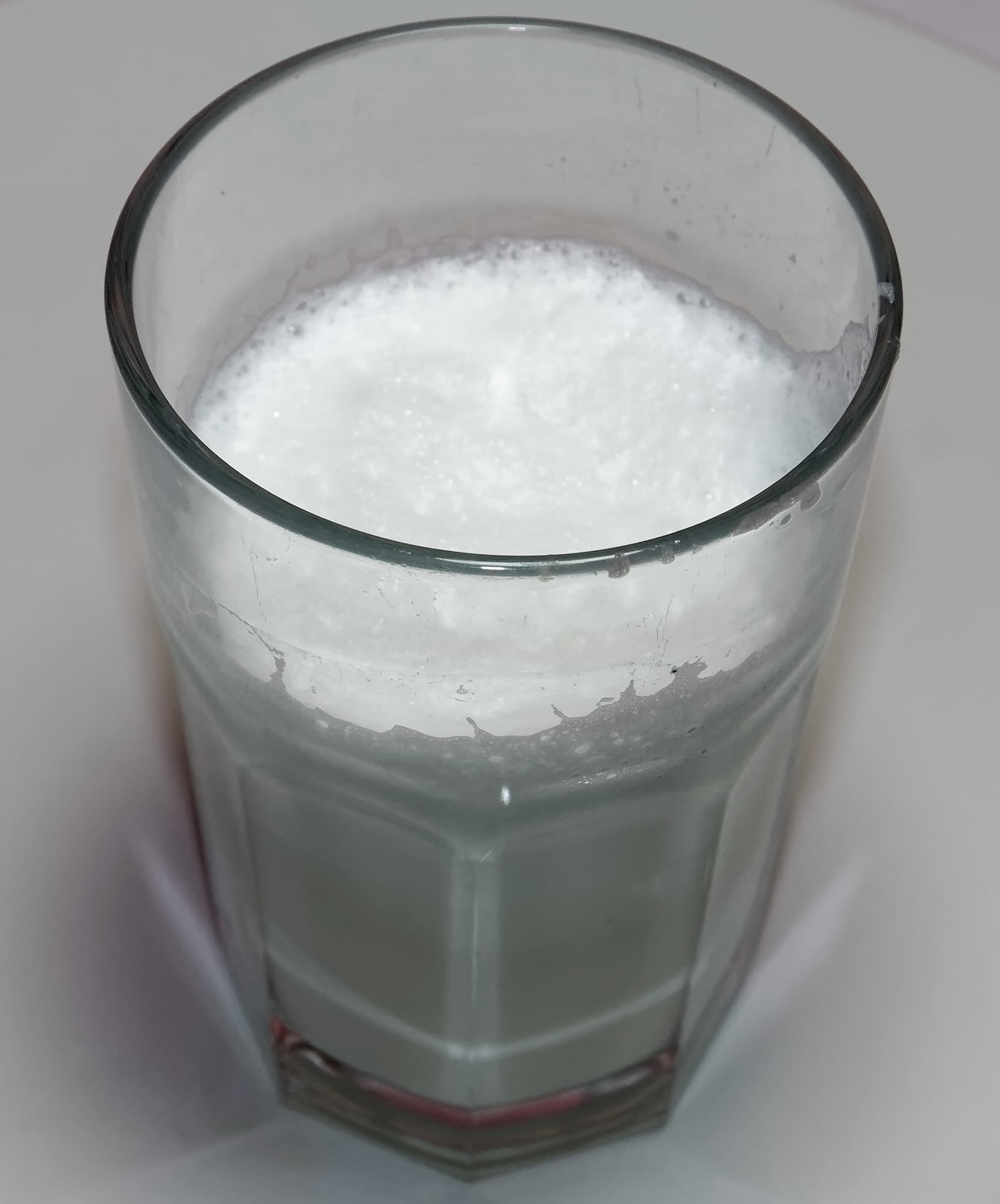 Через одну минуту и 15 секунд молоко нагрелось до желаемой температуры в 70 °C. Пена образовалась устойчивая и пышная, с большим количеством пузырьков.