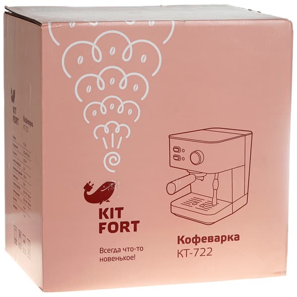 Рожковая кофеварка Kitfort КТ-722 — отличный выбор для большинства любителей кофе. Точнее, для тех из них, кому простота и скорость приготовления напитка важнее, чем повторяемость результата, либо для тех, кто готов потратить время, чтобы привыкнуть к ручному управлению и выработать автоматизм движений для получения нужного объема и крепости напитка.