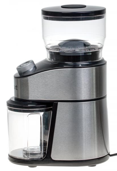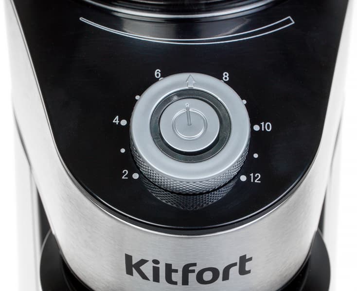 Кофемолка Kitfort KT-744 привлекла наше внимание в первую очередь соотношением цены и качества: пожалуй, мы не ошибемся, если скажем, что перед нами едва ли не самая дешевая модель, оснащенная настоящими коническими жерновами. Говоря проще, вряд ли вам удастся купить настоящие жернова еще дешевле. При этом прибор не только весьма достойно выглядит, но и отличается приличным качеством сборки.