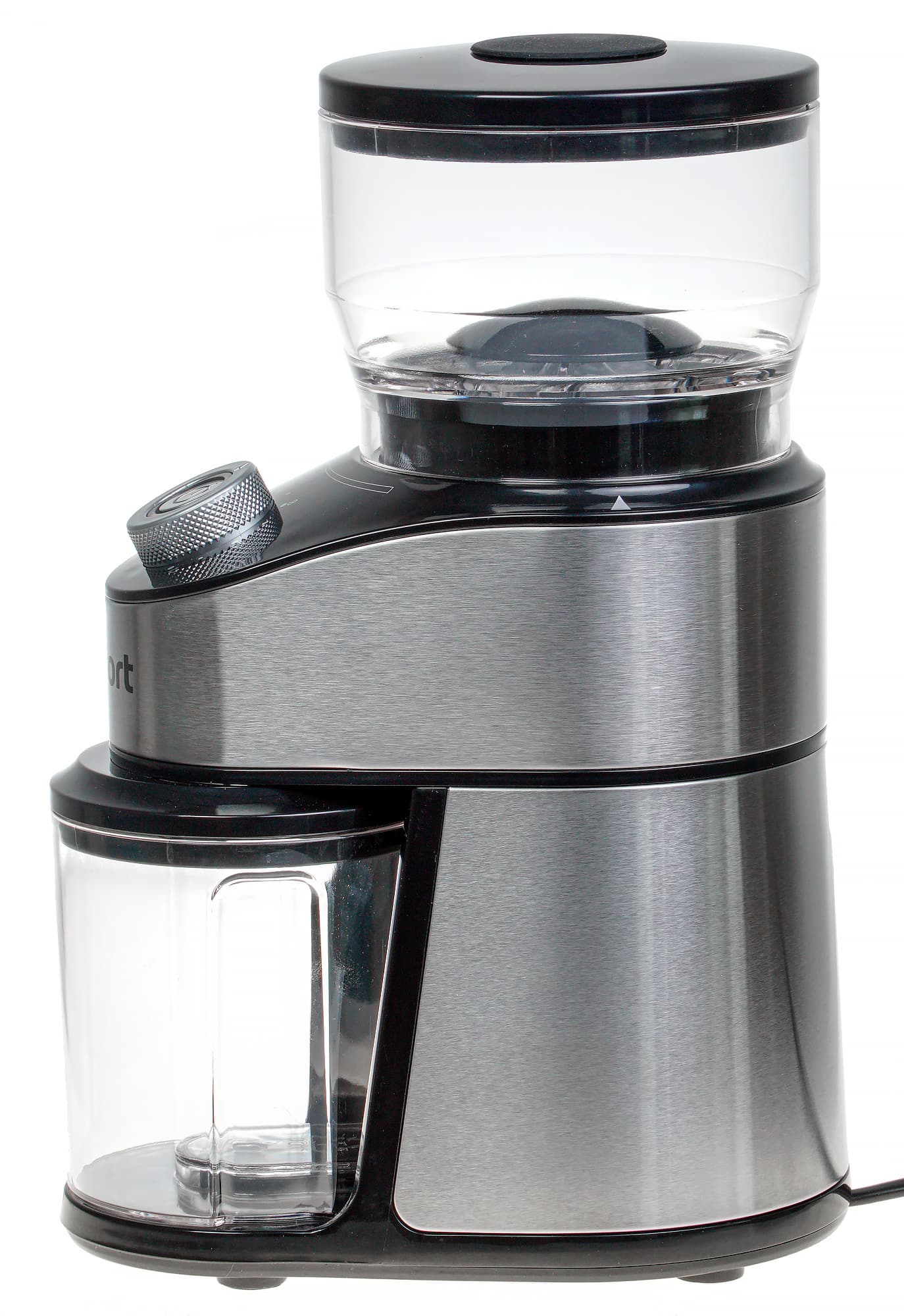 Хоппер вмещает в себя примерно 160 г кофейных зерен. По совместительству хоппер выполняет функцию регулировки степени помола: для настройки нужно совместить риску на контейнере с нужной позицией на корпусе устройства.
