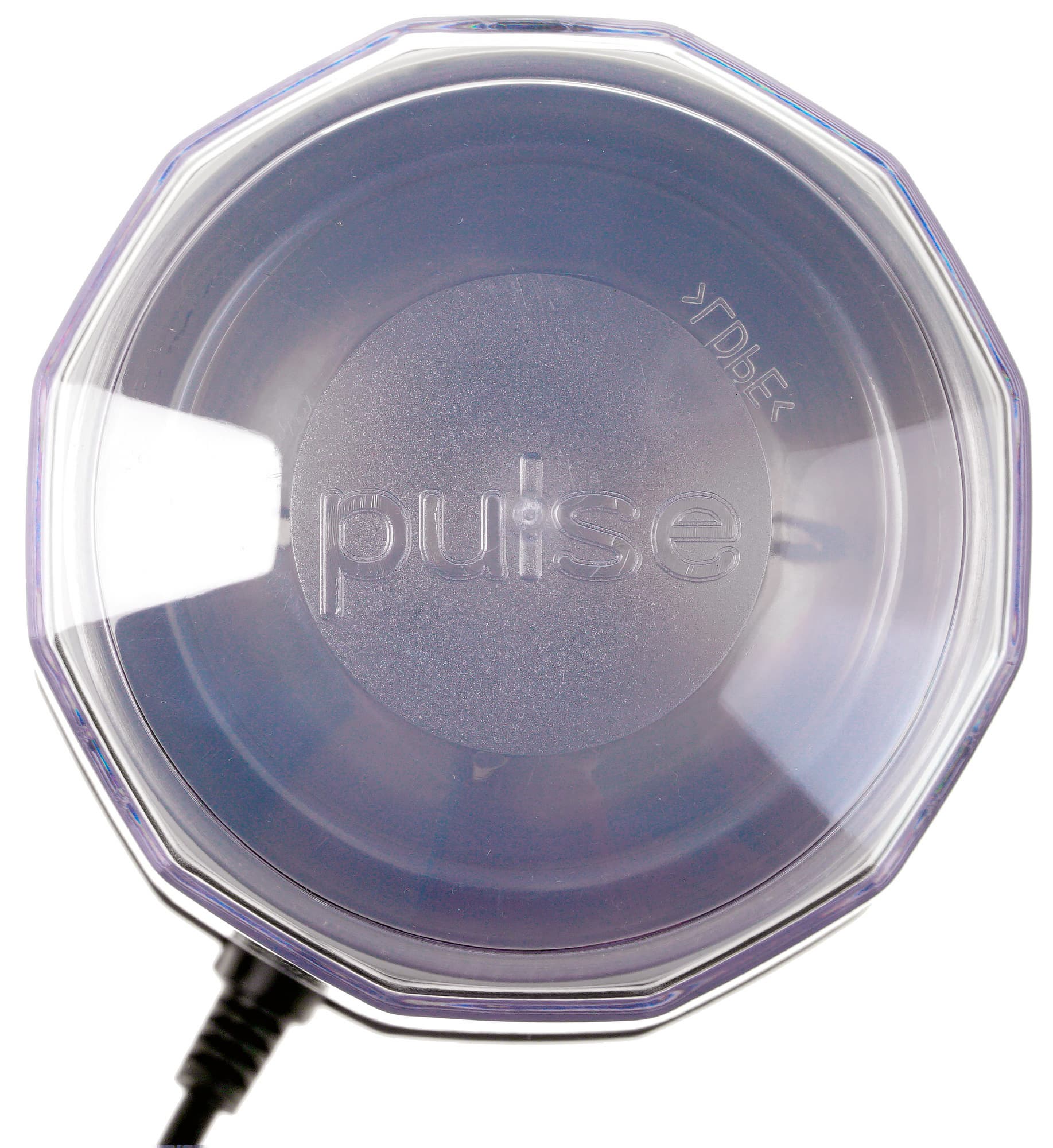Наконец, у кофемолки есть еще одна крышка (прозрачная, пластиковая и граненая, как и корпус), полностью покрывающая чашу вместе с силиконовой крышкой. Эта внешняя крышка не только защищает пользователя от случайного включения кофемолки, но также выполняет роль кнопки включения: для запуска мотора нужно установить крышку на корпус устройства и слегка надавить на нее. Подсказкой для пользователя в данном случае, очевидно, служит надпись Pulse.