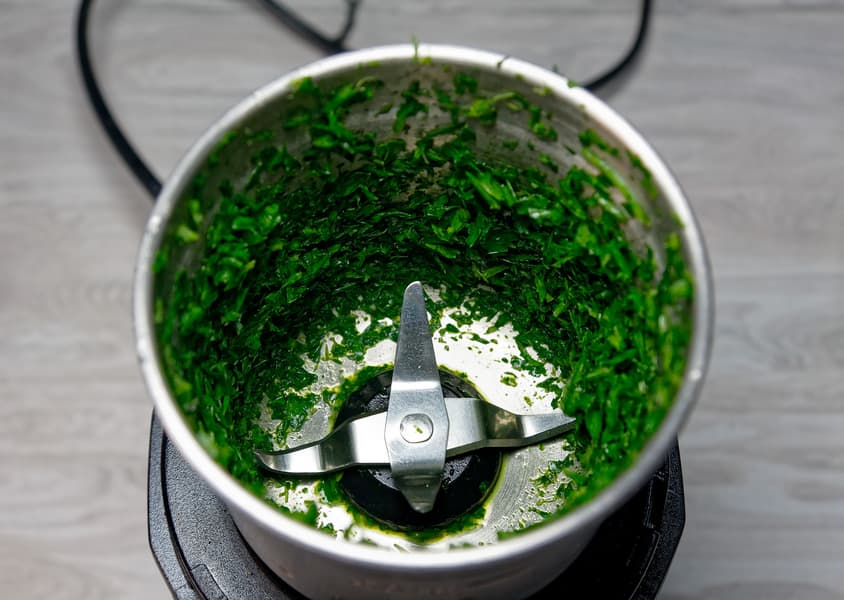 Тут у нашей кофемолки никаких проблем не возникло: с зеленью она справилась играючи, измельчив и равномерно разбросав кусочки петрушки по стенкам чаши за считанные секунды.