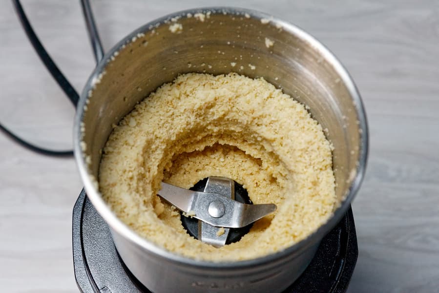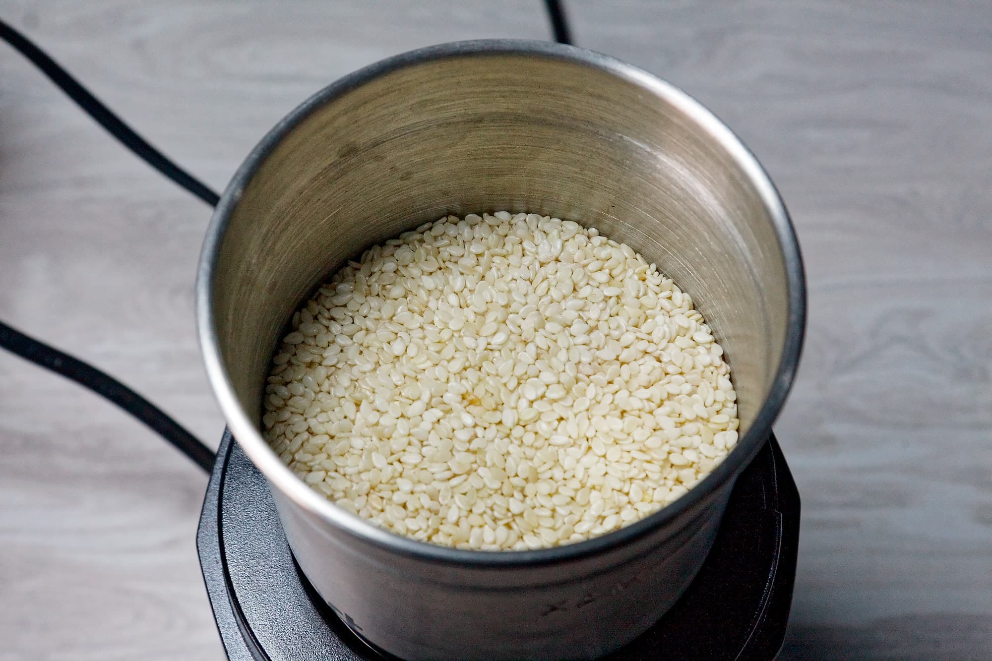 Мы заполнили чашу необжаренным кунжутом до отметки max, после чего дважды запускали кофемолку на 6-7 секунд.