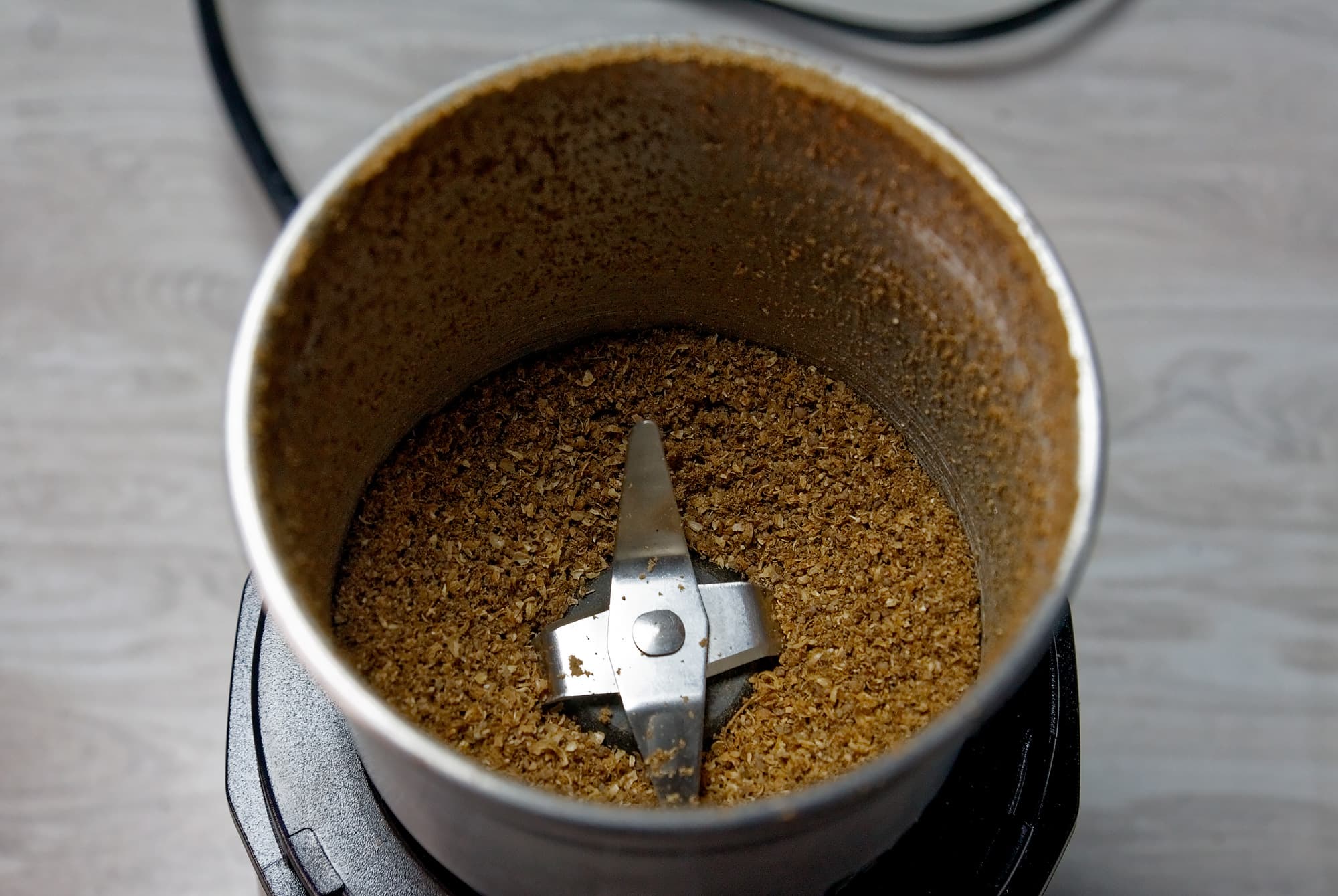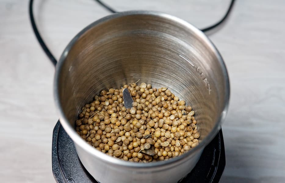 У нас под рукой оказался запас кориандра. Тут мы решили не напрягать кофемолку и смолоть относительно небольшую порцию.