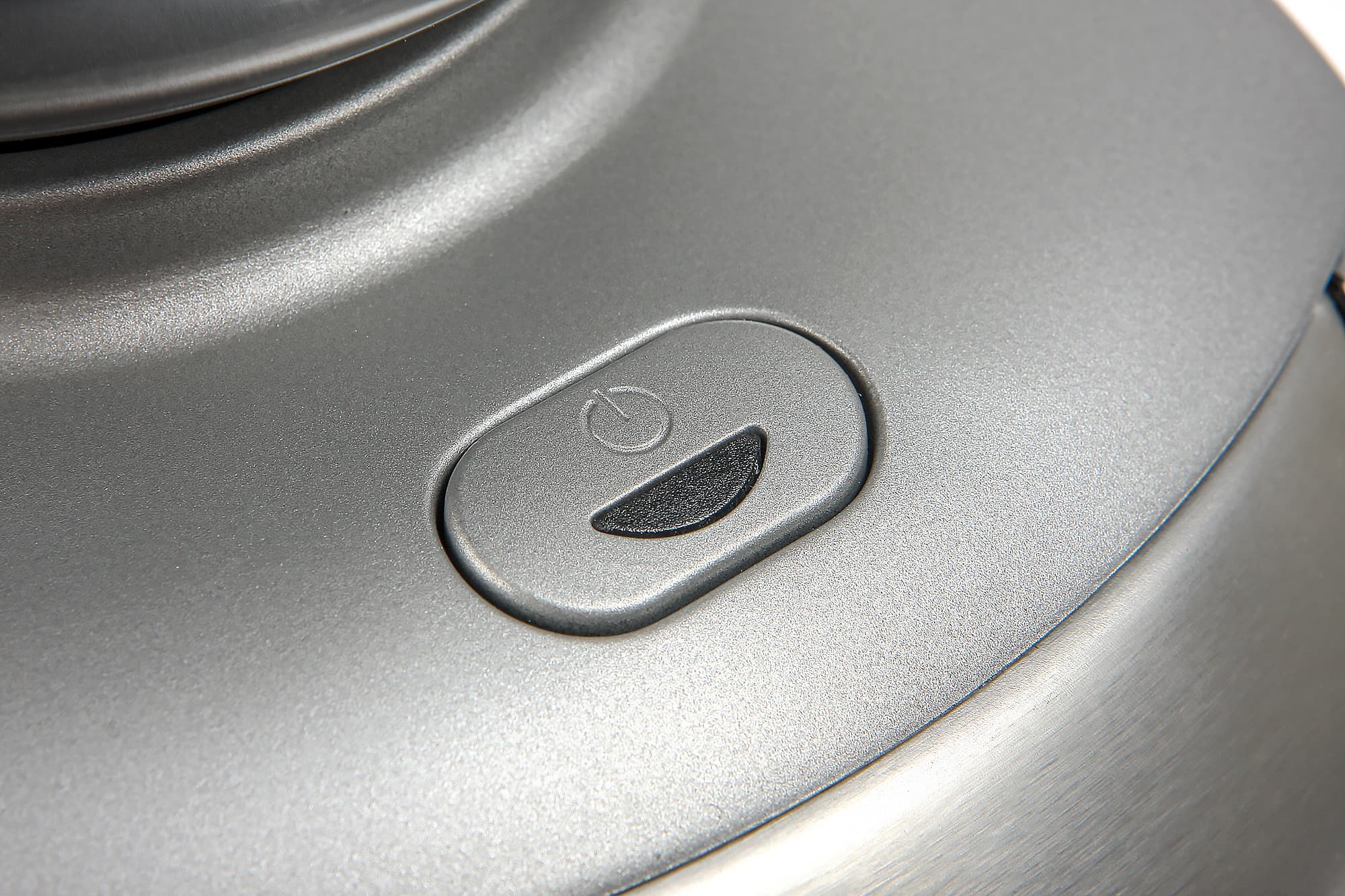 Управление кофемолкой осуществляется с помощью таймера и кнопки включения. В процессе работы на кнопке включения загорается синий светодиодный индикатор.