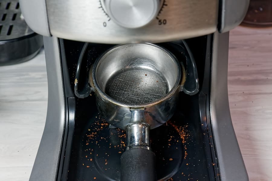 - установить пластиковый поддон и контейнер для молотых зерен, либо установить держатель рожка