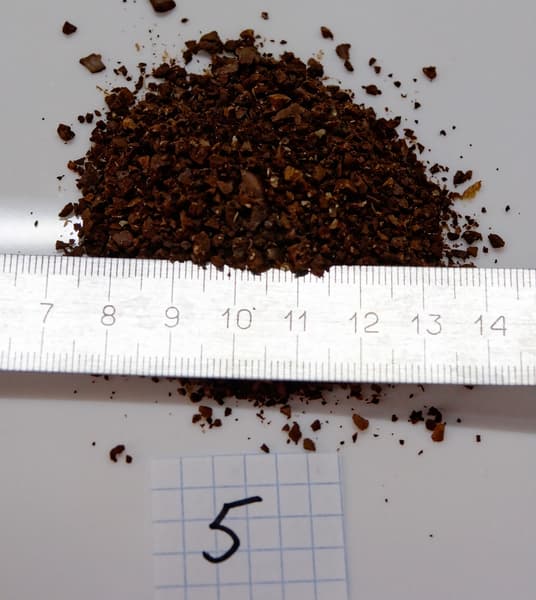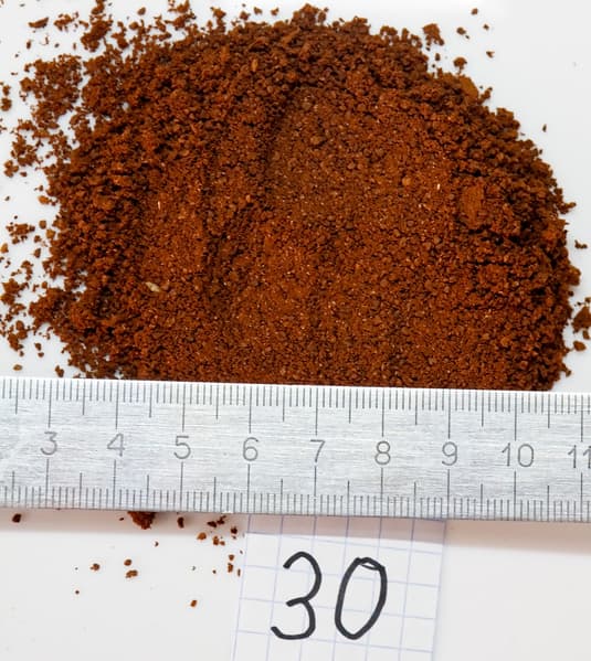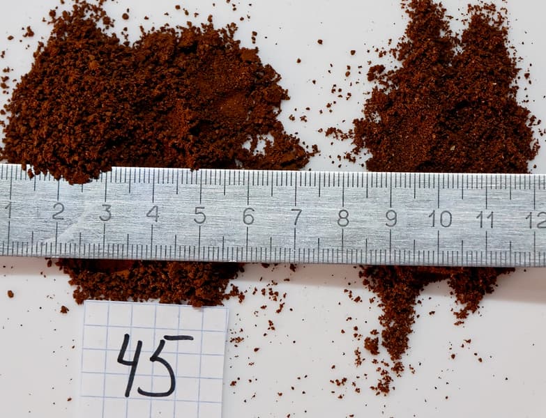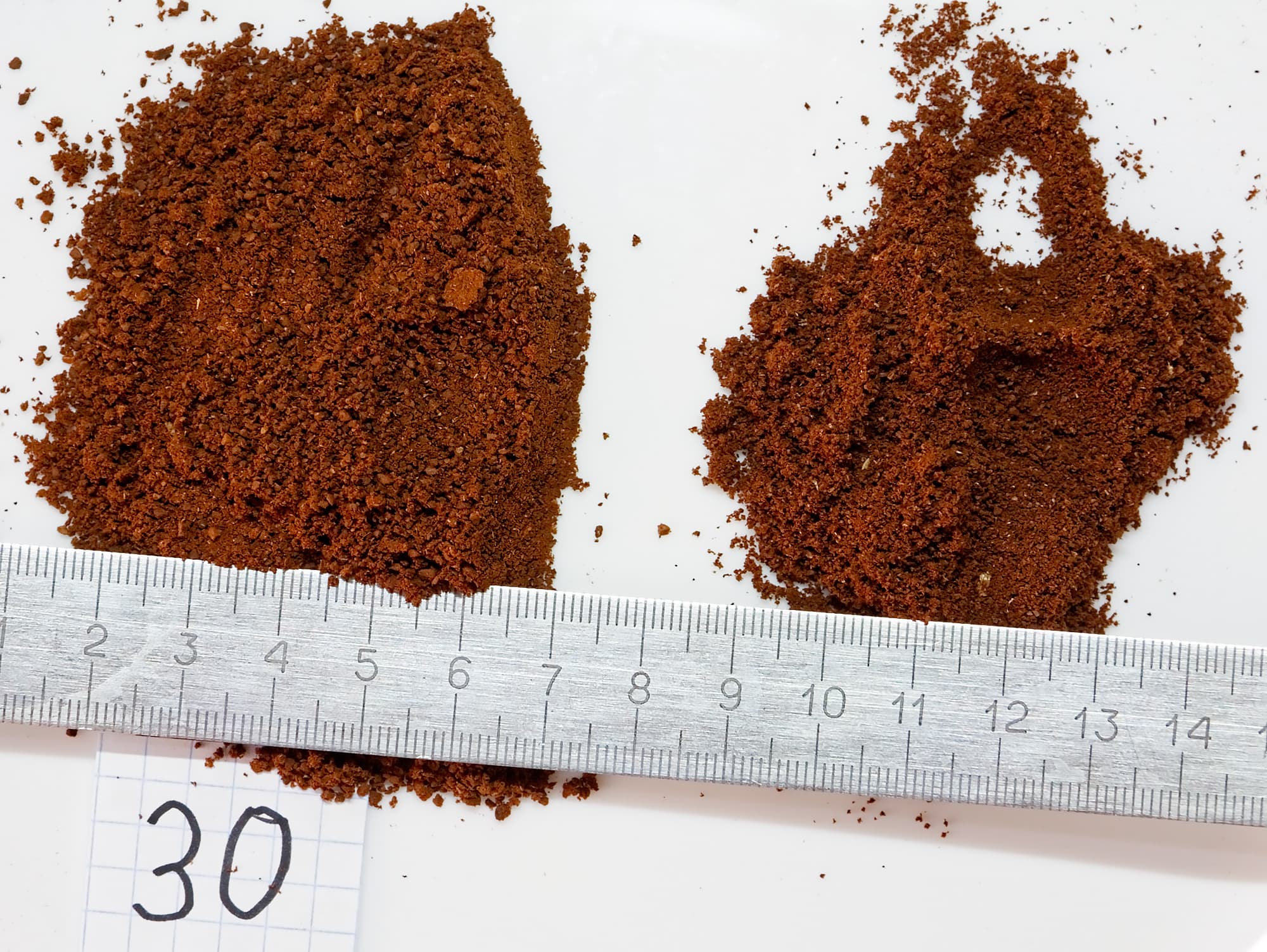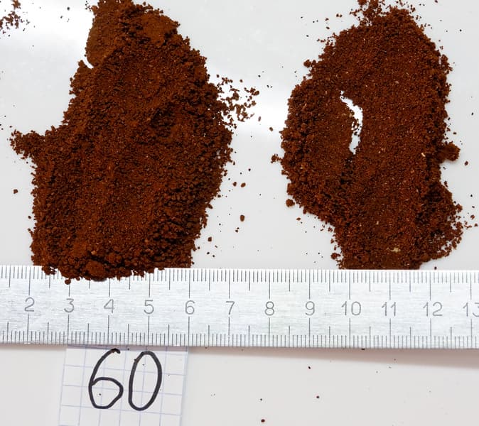 Сравним наш помол с тестовым помолом, произведенным на жерновой кофемолке, настроенной для приготовления эспрессо.