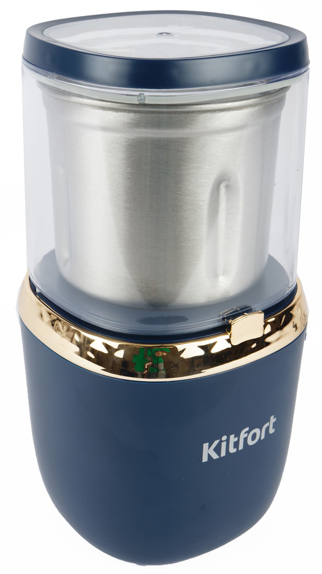 Подавляющее большинство роторных (ножевых) кофемолок выглядят и устроены примерно одинаково. Это и не удивительно: кофемолка — прибор простой, все технические решения уже придуманы. Зачем изобретать что-то новое? Тем приятнее увидеть прибор, отличающийся от большинства, похожих как две капли воды, моделей, как минимум визуально. Пример такой кофемолки — Kitfort KT-769. Устройство имеет стильный внешний вид и выглядит дороже своей стоимости (розничная цена на момент подготовки материала составляет 1600 рублей).