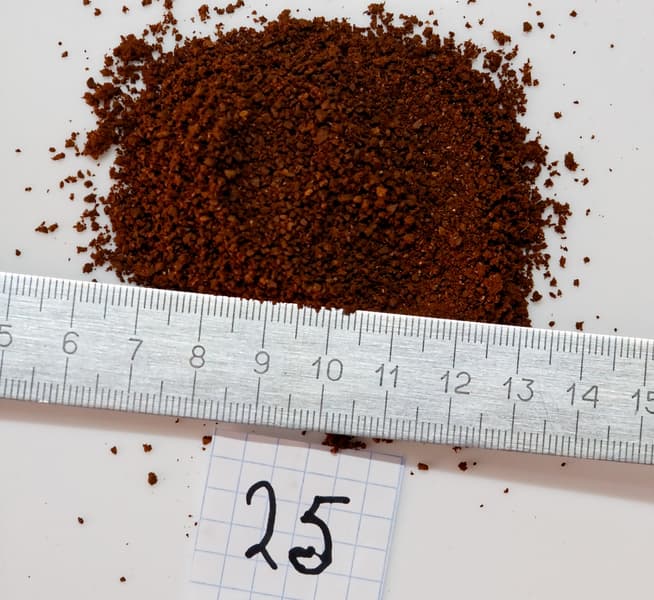 После основного теста мы сделали перерыв и выполнили дополнительное измельчение кофе — два раза по 15 секунд. После первого измельчения мы получили результат близкий к нашему эталонному помолу для эспрессо.