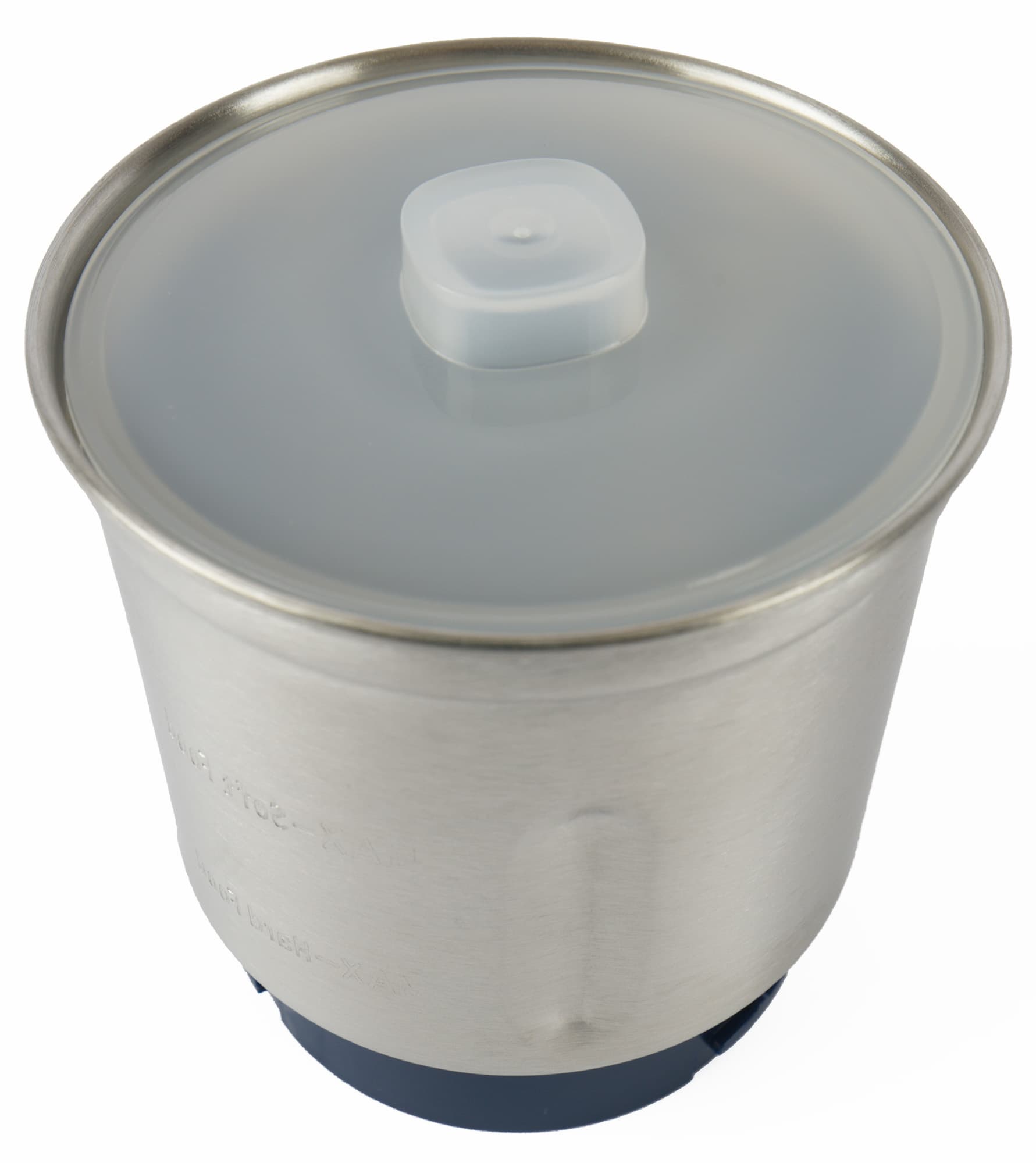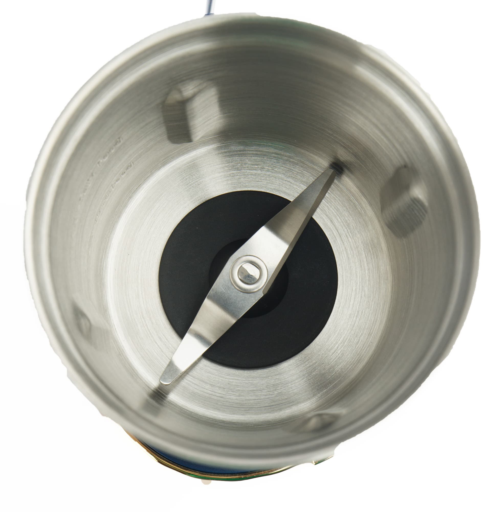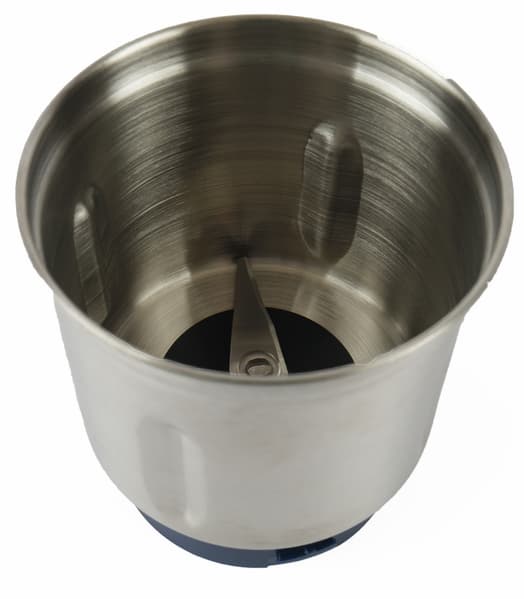 Чаша сделана из нержавеющей стали. Заявленная емкость — 200 мл, а рабочий объем в пересчете на кофейные зерна составляет 60 граммов. С внутренней стороны чаши можно рассмотреть отметки максимального наполнения чаши твердыми и мягкими продуктами соответственно.