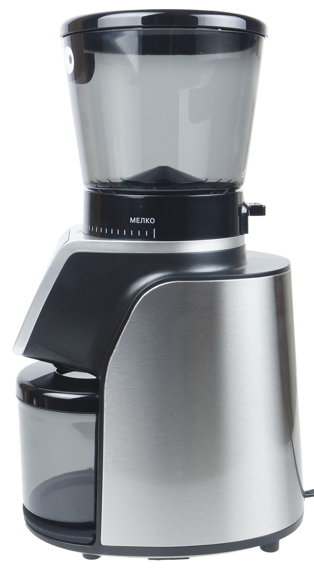 Давайте теперь рассмотрим кофемолку поближе. Устройство прибора, несмотря на современный вид, имеет совершенно классическую конструкцию (не считая, конечно, панели управления).