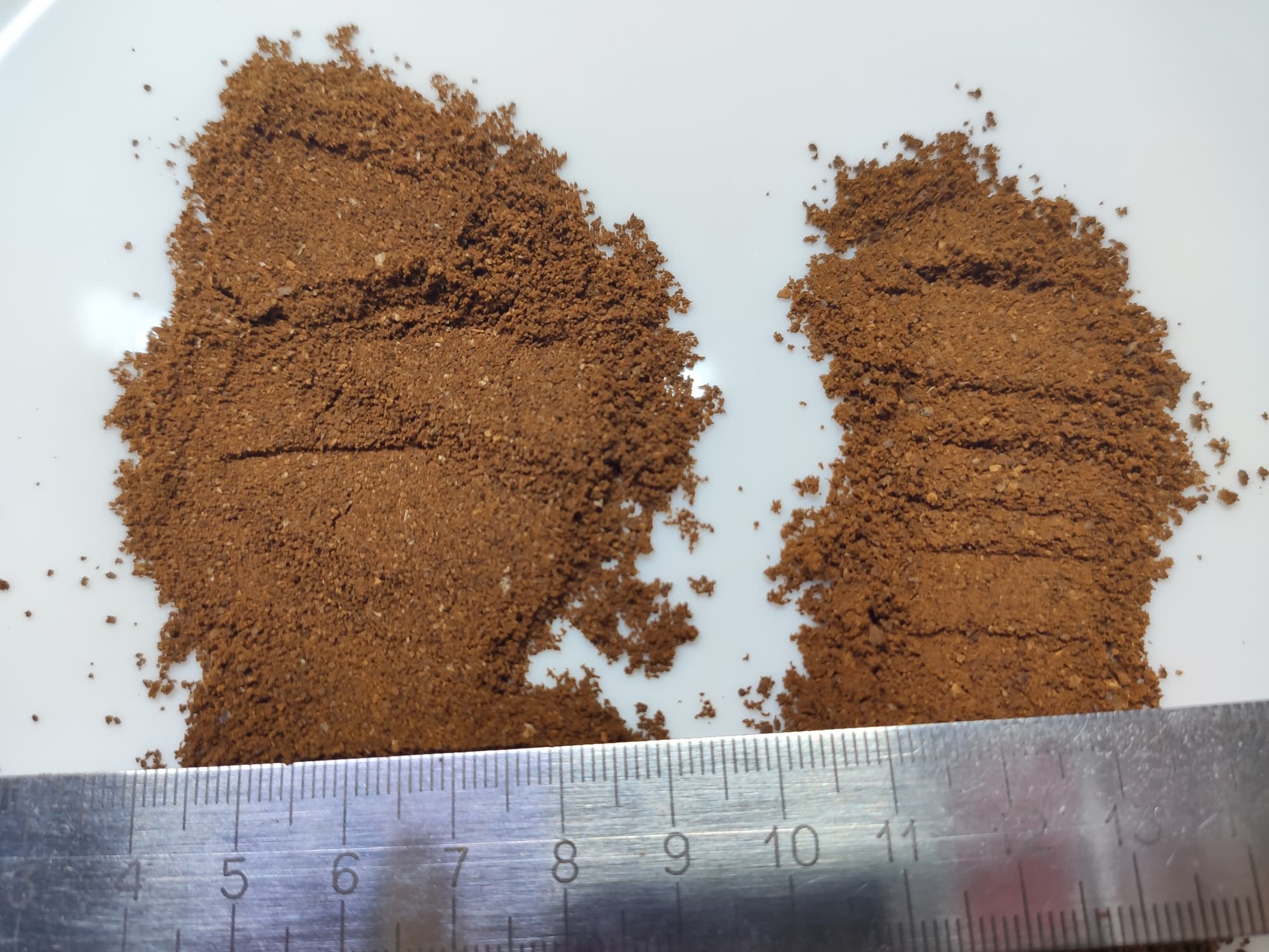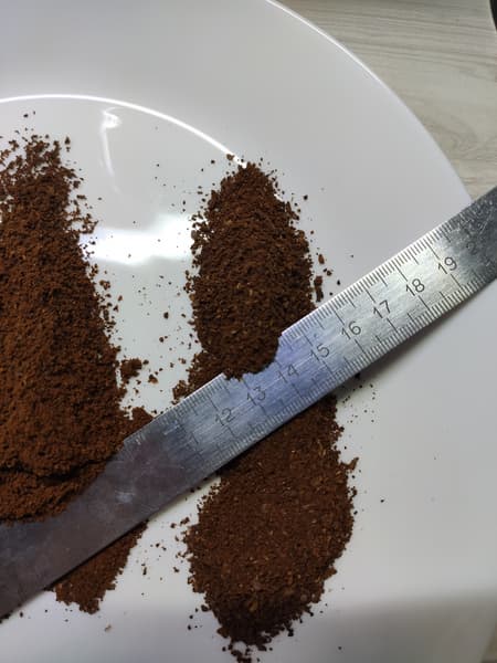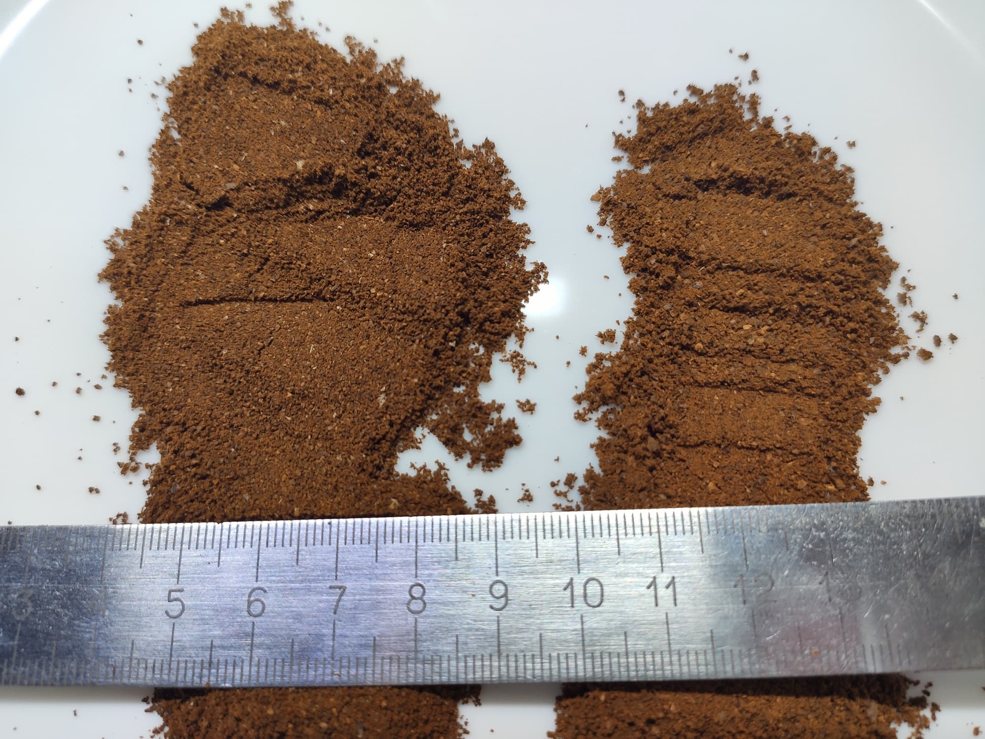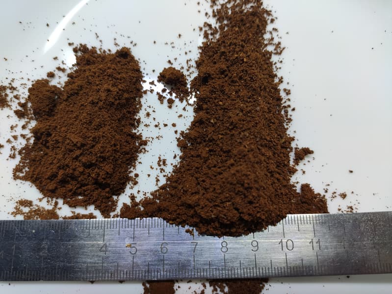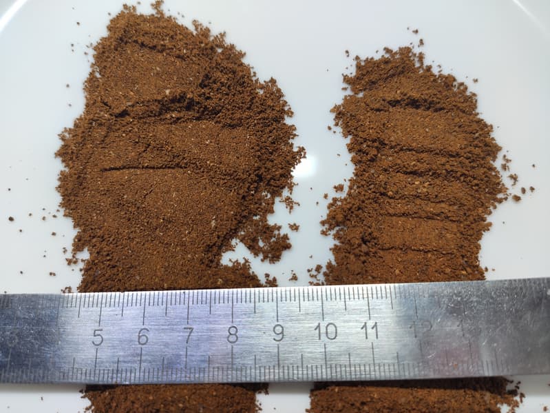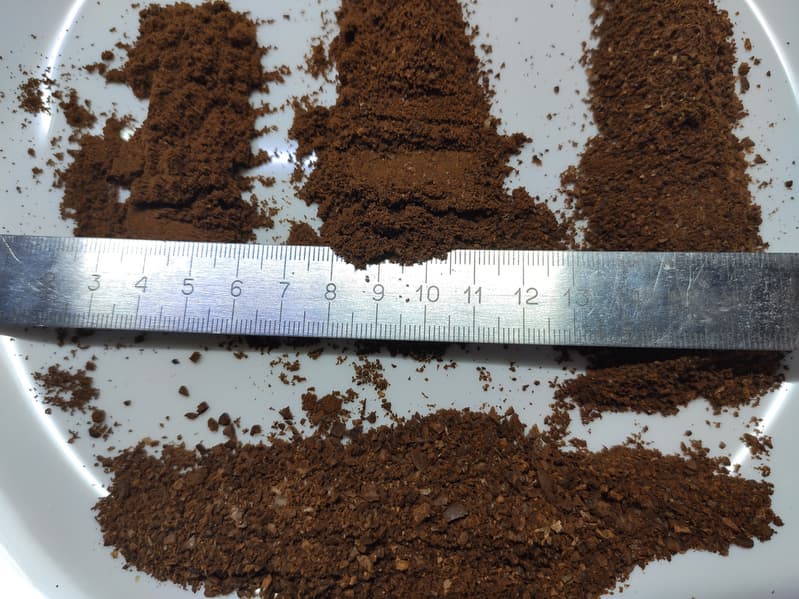 Последнее фото — сравнение нашей кофемолки с эталонным помолом для эспрессо, выполненным на кофемолке полу-профессионального уровня.