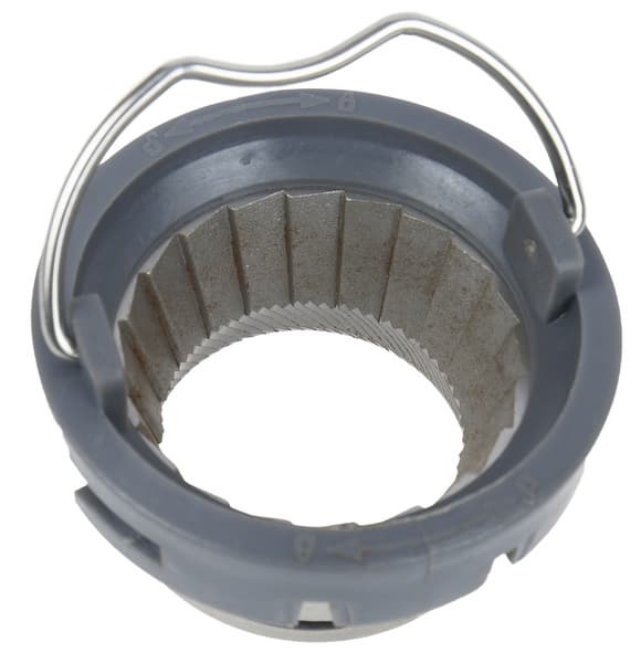 Верхний жернов у нашей кофемолки съемный: он обрамлен пластиком, а для монтажа и демонтажа используется специальная откидная ручка-проволочка.