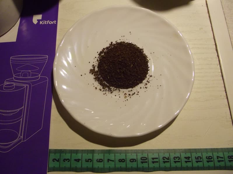 Указанная в инструкции скорость помола — 18 секунд на две условные чашки эспрессо — подтвердилась. На выходе получается 15-17 г помола. Порция достаточная для варки напитка на одного-двух человек.