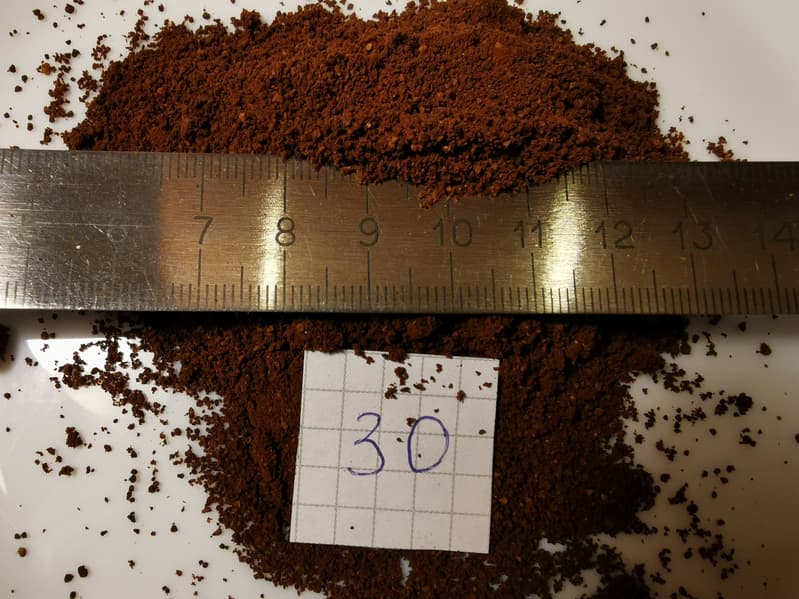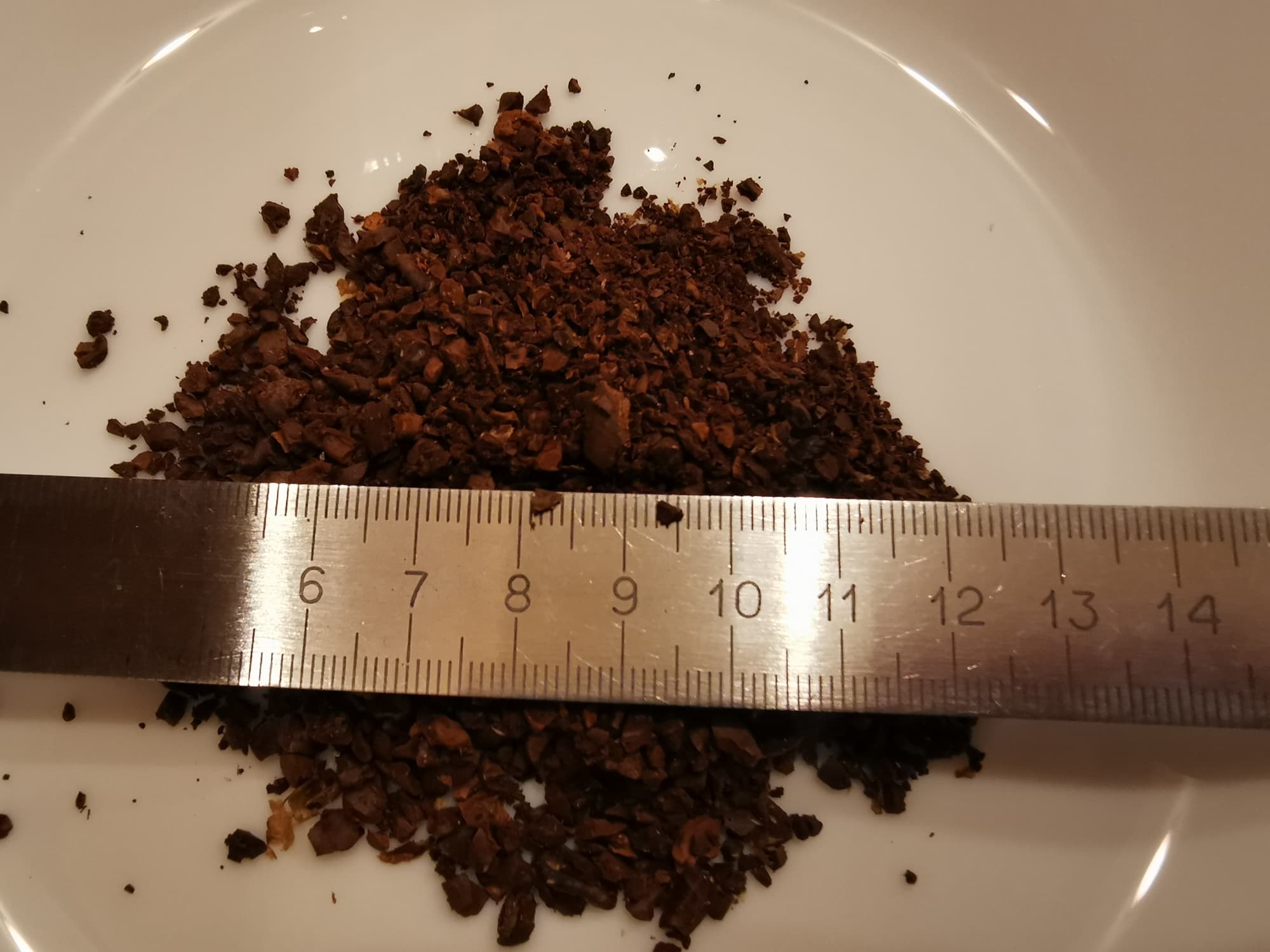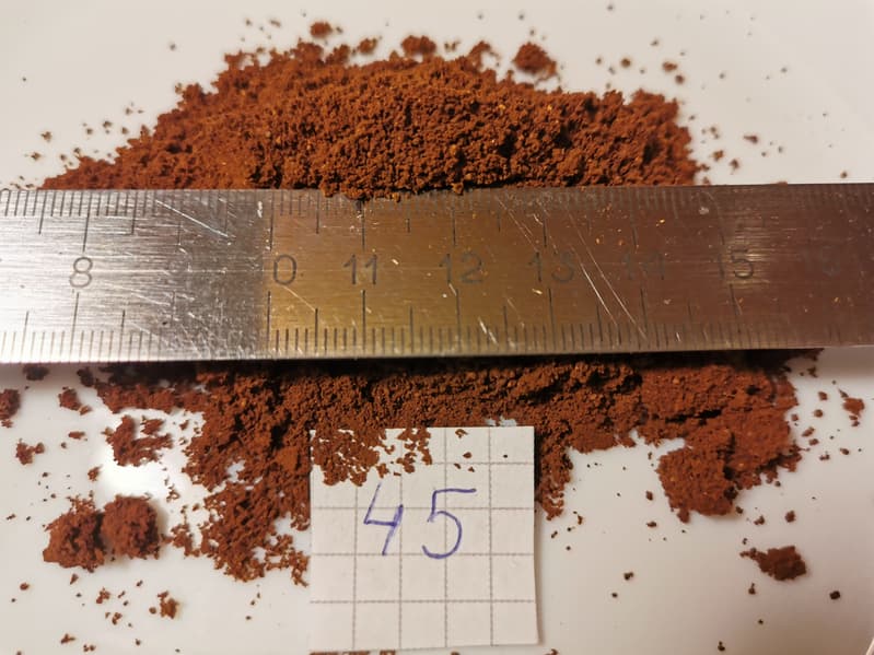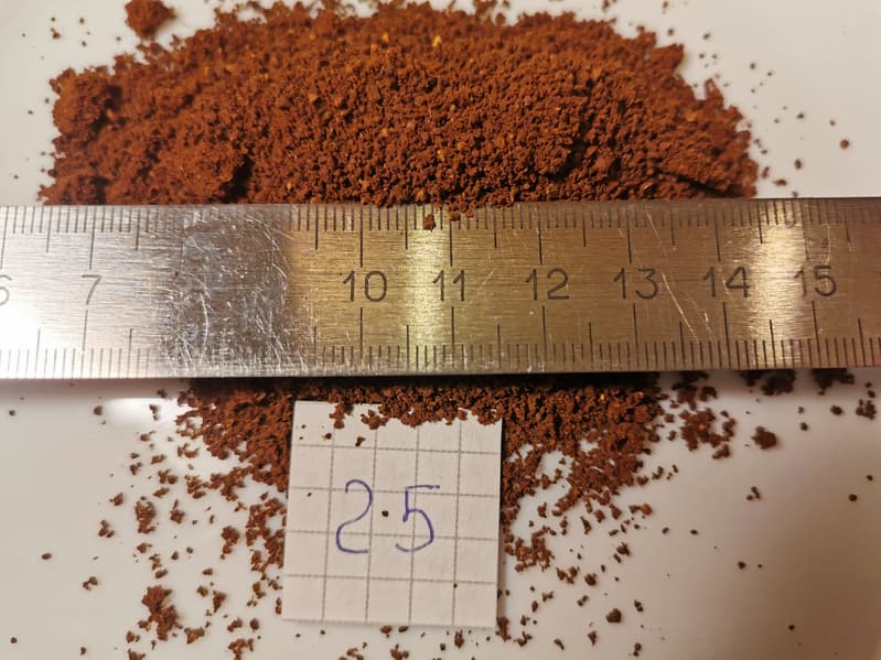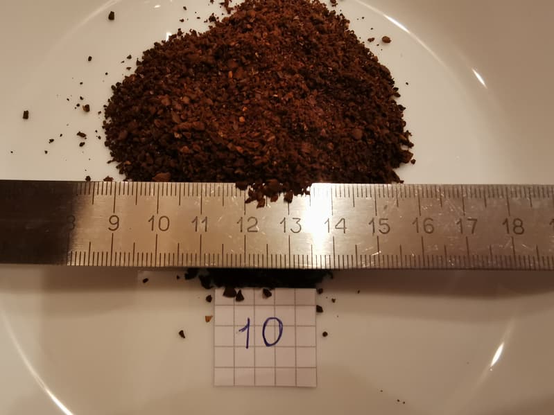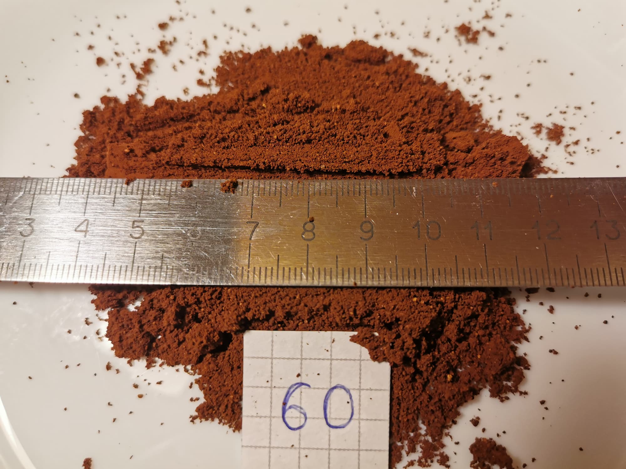 После основного теста мы сделали перерыв и выполнили дополнительное измельчение кофе — два раза по 15 секунд. После первого измельчения мы получили результат, близкий к эталонному помолу для эспрессо.