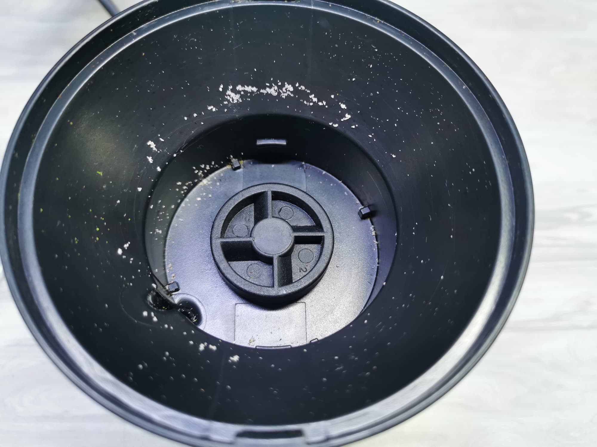 Нам не очень понравилось, что во время работы прибора, либо при открывании верхней крышки, в гнездо для чаши на моторном блоке попадают крошки из самой чаши. Это отверстие изолировано и его можно протереть влажной, а затем сухой тряпочкой, но вычищать крошки изнутри неудобно, да и сам факт происходящего вызывает раздражение и ощущение непродуманности строения крышки.