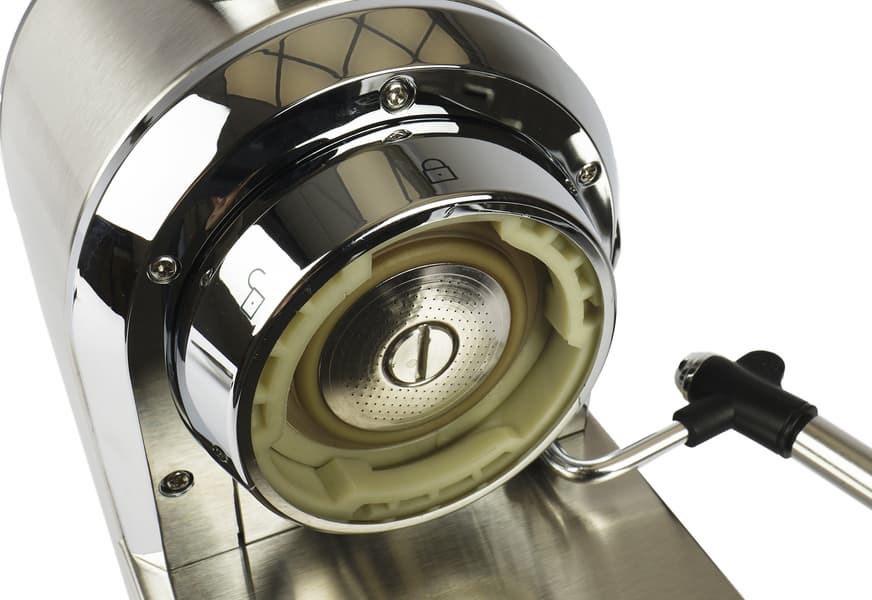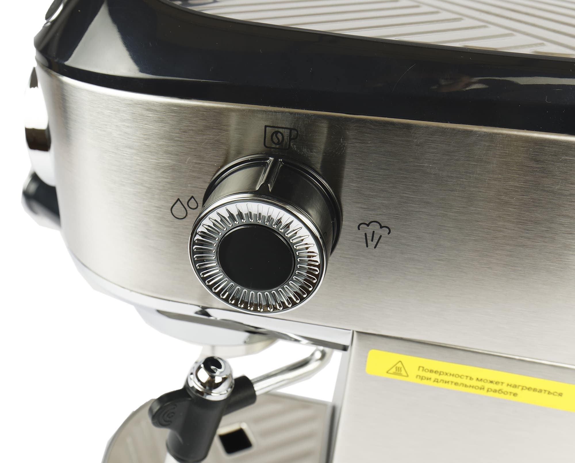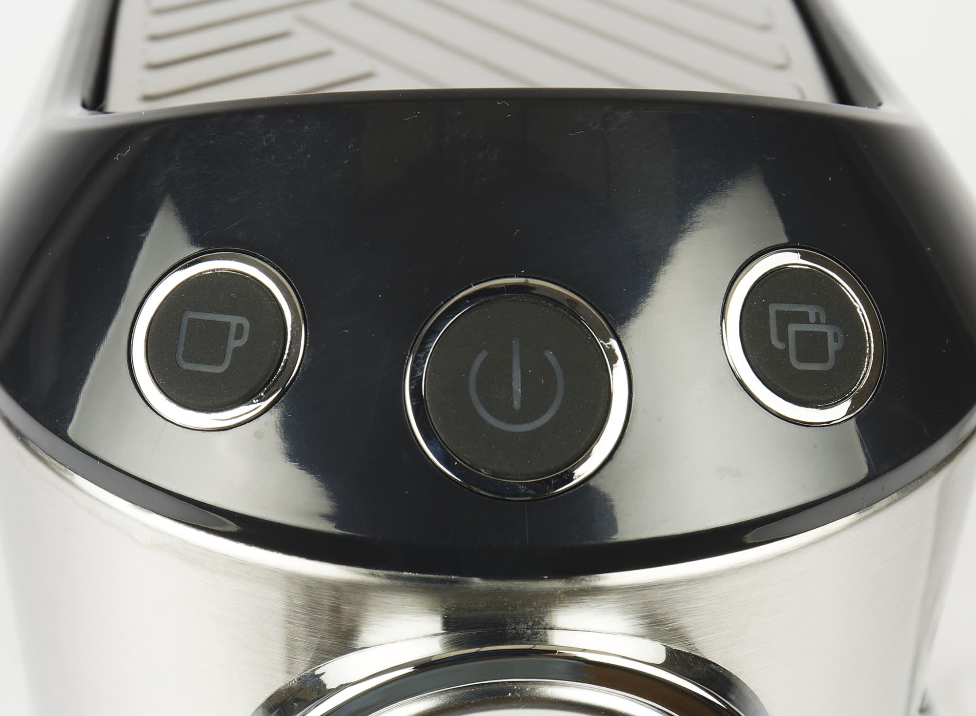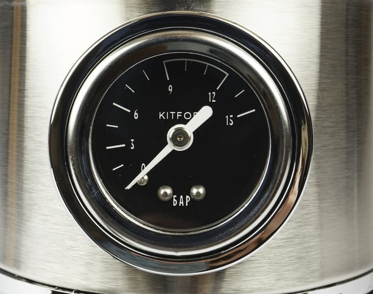 Спереди, прямо напротив пользователя, под кнопками управления, мы видим манометр, с помощью которого можно контролировать давление во время приготовления напитка.