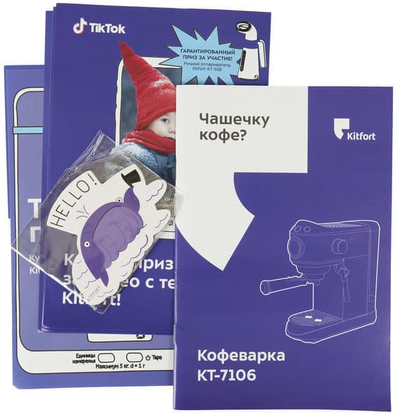 Из примечательных особенностей сразу можем отметить, что кофеварка имеет в комплекте ручной насос — такое встретишь нечасто. Предполагается, что он должен использоваться единожды — для запуска работы устройства, пока в нем еще нет воды. Мы проверим, насколько такой способ удобен и уместен для современной рожковой кофеварки. Все прочие характеристики KT-7106 кажутся весьма обычными для опытного эксперта, и мы ждем стабильно хороших/приемлемых тестов.