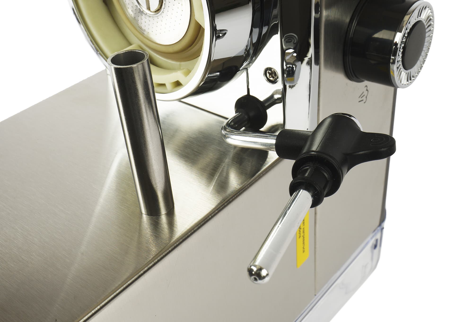 Под съемной металлической насадкой-панарелло мы видим собственно трубку капучинатора. Взбивать молоко можно как с насадкой (с небольшим количеством дополнительного воздуха), так и без нее.
