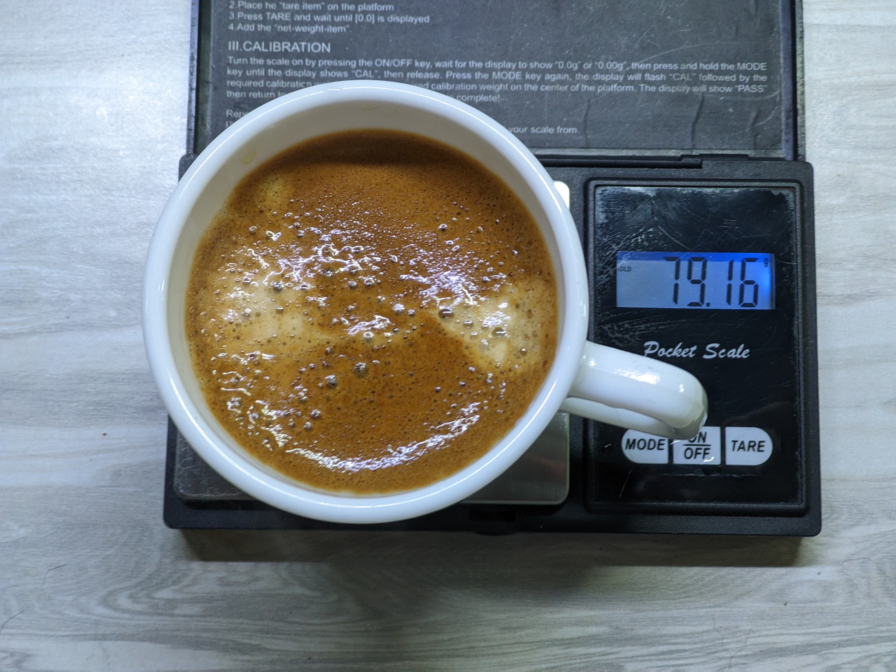 Двойной эспрессо весил чуть менее граммов (при закладке кофе в 16 граммов).