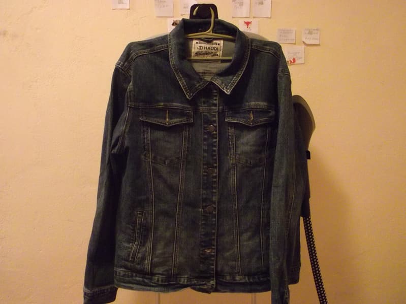Куртку расположили вертикально на вешалке. Пар отлично справился с замятостью, чуть больше усилий пришлось на карманы и воротник. Вещь приобрела опрятный вид. На всё ушло чуть больше пяти минут. «Лен» (максимальная мощность) — наиболее результативный режим.