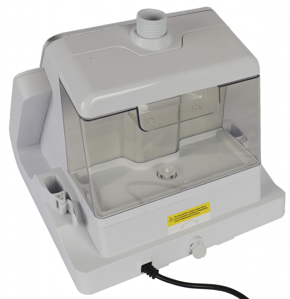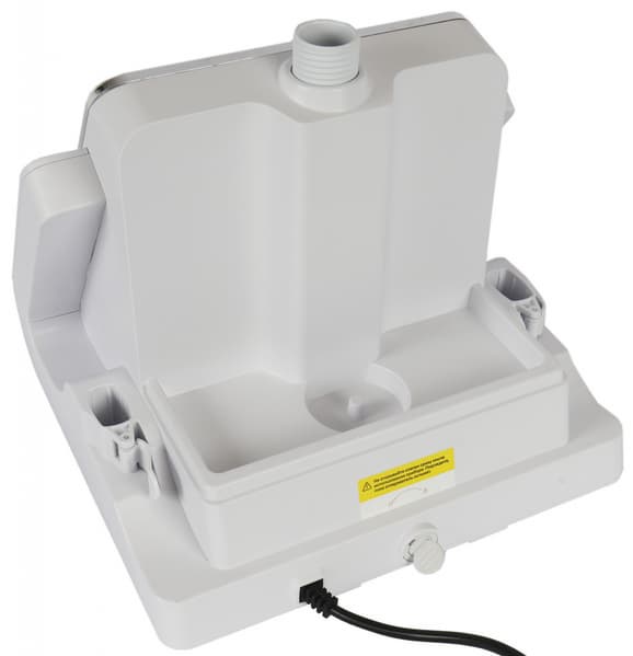 Съемный резервуар из прозрачного пластика имеет удобное место для подъема, снимается за секунды и встает на место как идеальный пазл. Внизу, у его основания, есть сопровождающая наклейка с предупреждениями о тонкостях процесса съема после окончания работы. Резервуару необходимо дать остыть.