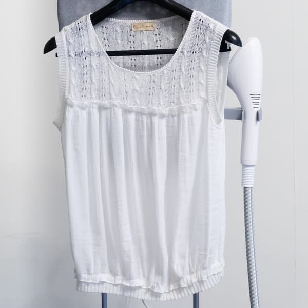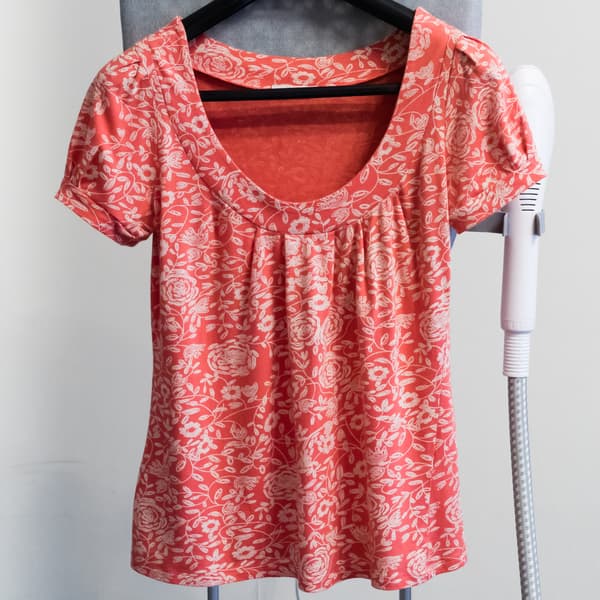 Подозреваем, что на фотографии не видно большой разницы между тем, как блуза выглядела до и после обработки паром. Тем не менее, разница есть, и весьма серьезная.