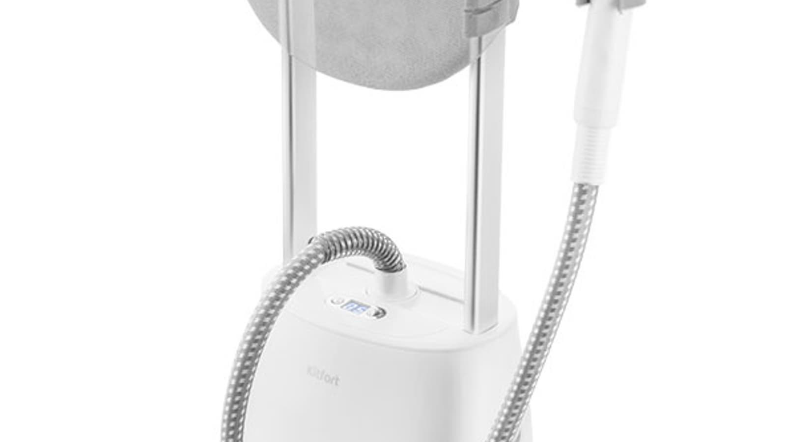 Вертикальный отпариватель Kitfort KT-975 представляется удобным в эксплуатации прибором. Отпариватель снабжен не только регулируемой мощностью подачи пара, съемным резервуаром для воды, двумя телескопическими стойками, которые надежнее и прочнее, чем одна, но и миниатюрной гладильной доской. Более того, доска может находиться в трех положениях: вертикальном, под углом и горизонтальном.