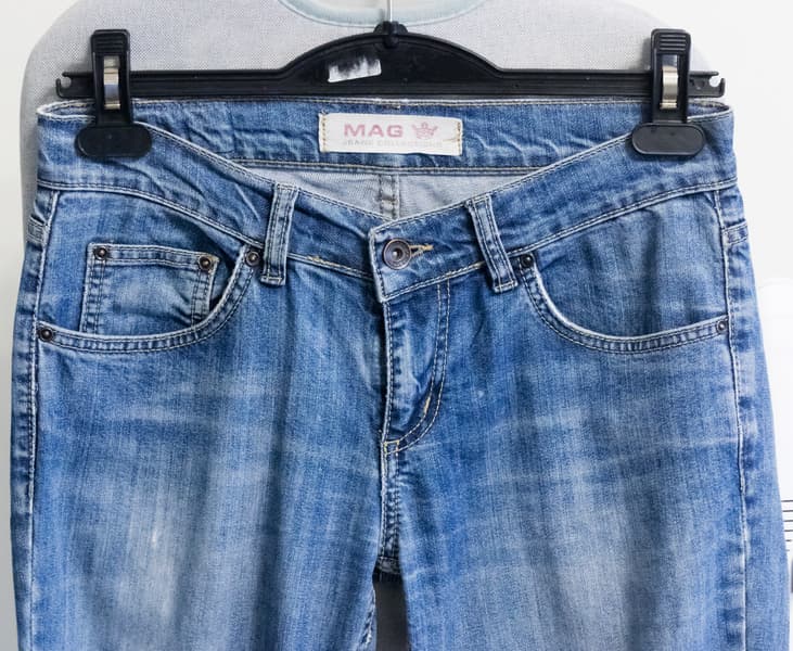 Джинсы после работы выглядят хорошо. Исчезли глубокие заломы и морщины, ткань стала гладкой и ровной.