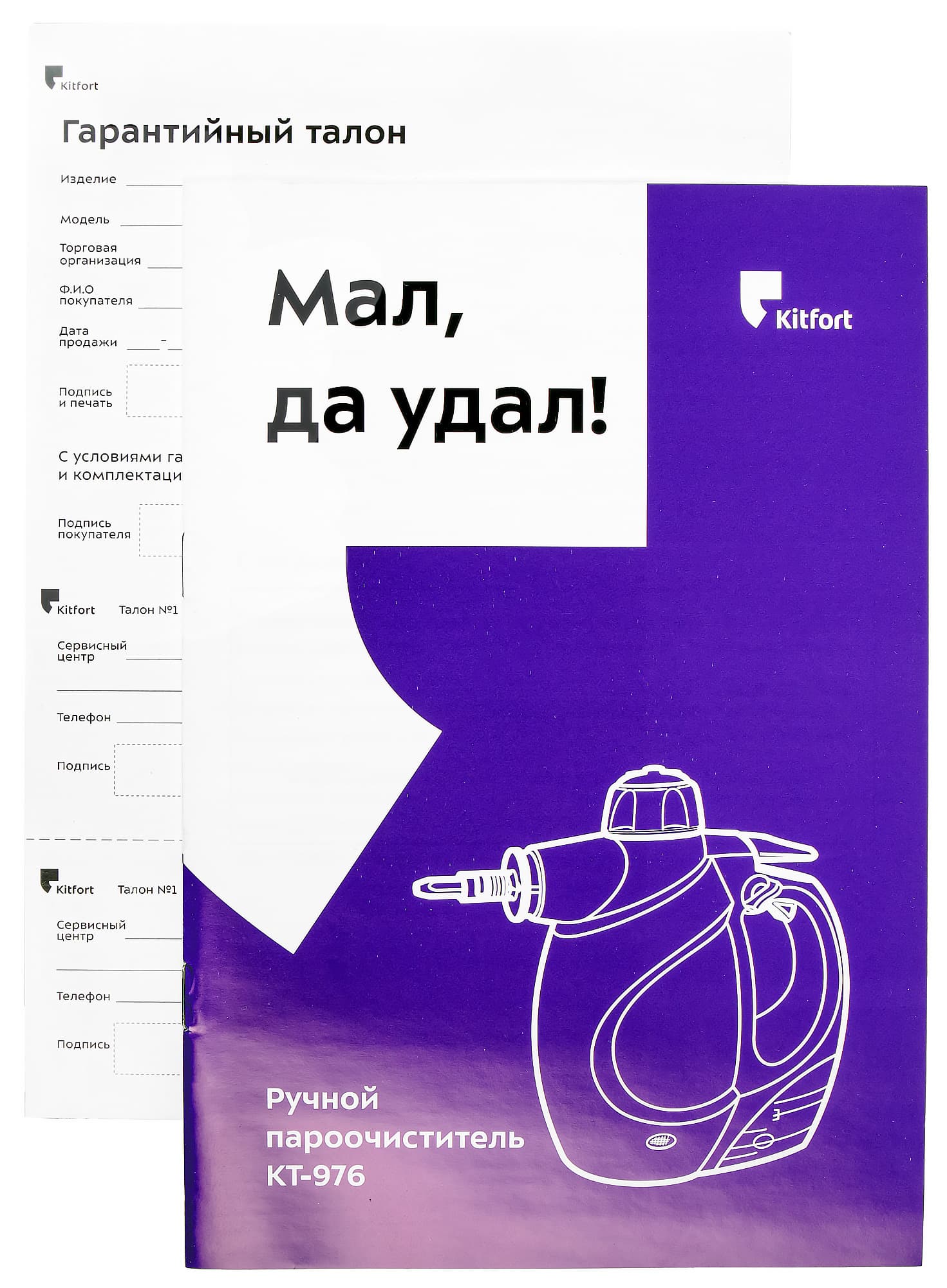 В брошюре формата А5 подробно рассказывается о пароочистителе Kitfort KT-976, мерах безопасности и правилах эксплуатации, а также об особенностях его использования. Упомянуто предназначение каждой из насадок, указано, как именно следует ими пользоваться. Полезен раздел с советами по паровой очистке различных материалов и поверхностей.