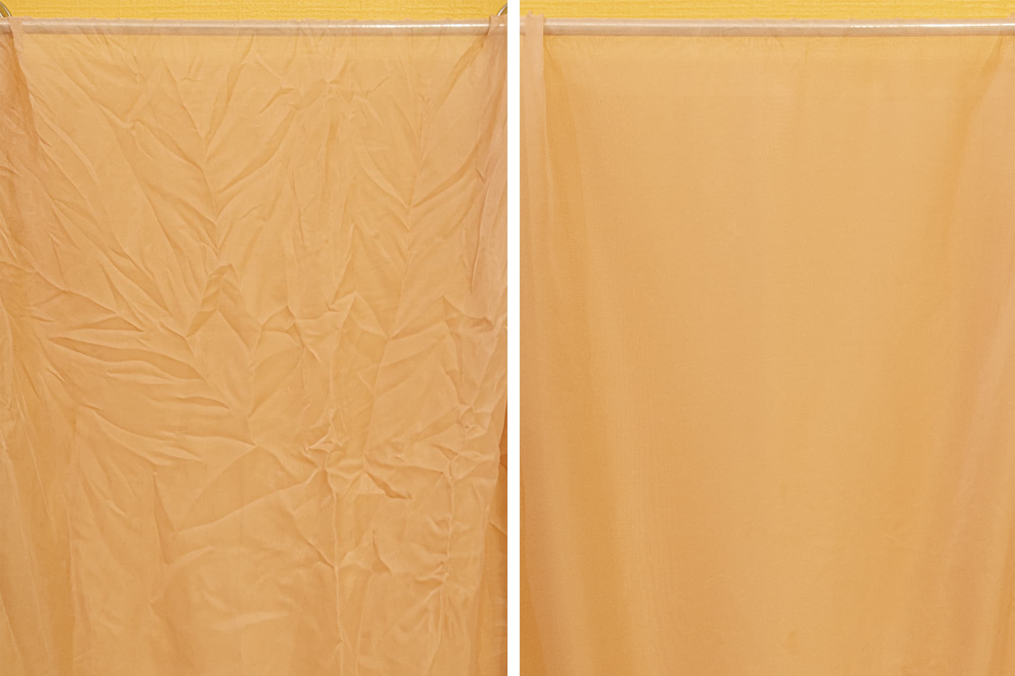 В процессе глажки ткань стала влажной, но после быстро высохла. Полосы и заломы, которые видны на итоговом снимке, на самом деле нарисованы на ткани.