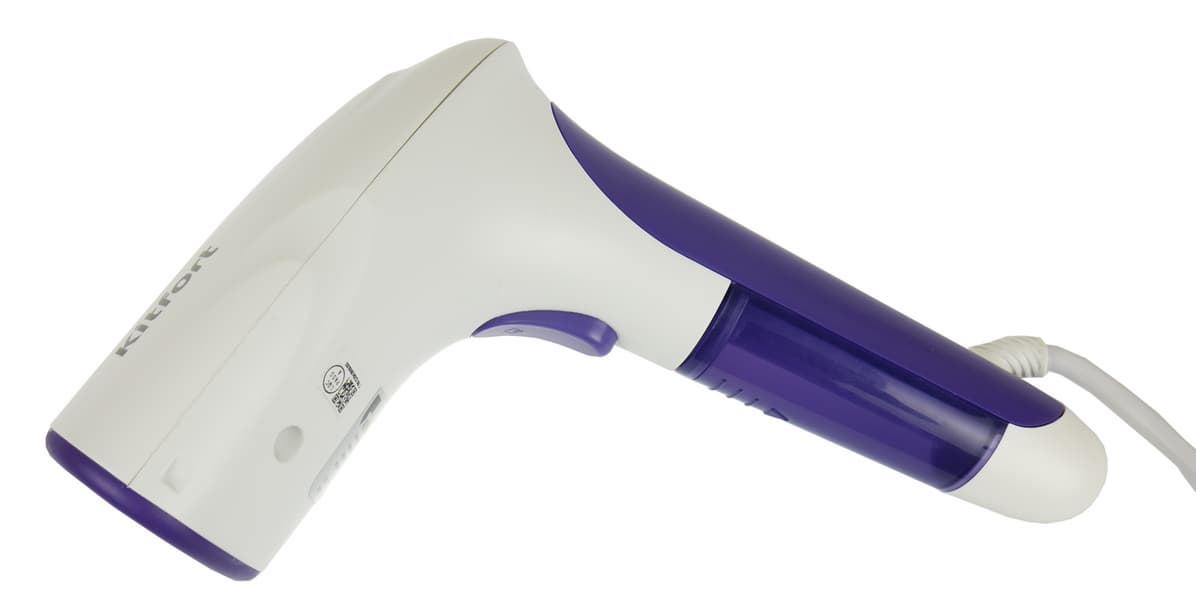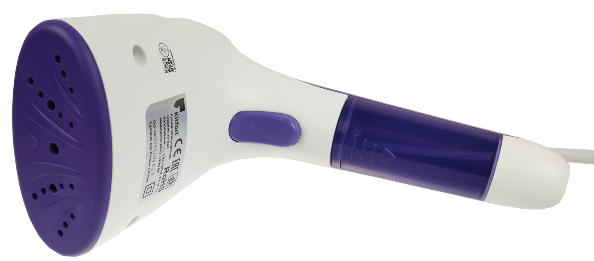 Управление ручным отпаривателем Kitfort КТ-982 осуществляется одной единственной кнопкой, расположенной на внутренней стороне рукоятки утюжка.