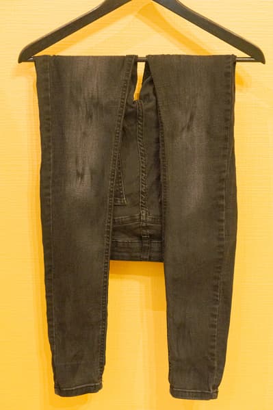 Джинсы были измяты сильным отжимом в стиральной машине и в дальнейшем высушены на батарее.