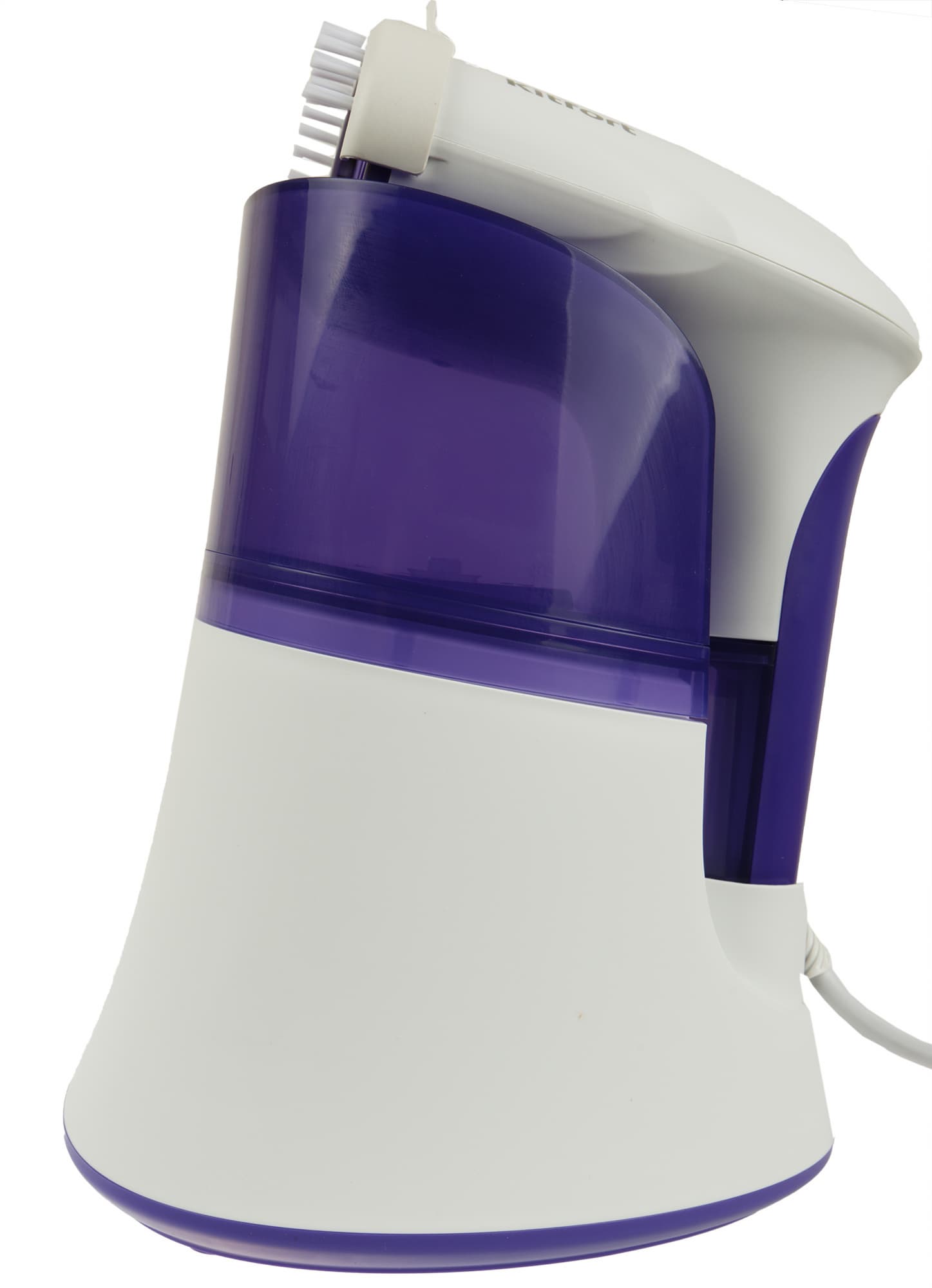 Конструкция ручного отпаривателя Kitfort КТ-982 состоит из: основного блока (бойлера), сверху на котором располагается резервуар для воды, и закрепленного в основании отпаривателя (утюжка), также имеющего небольшой резервуар для воды внутри ручки.
