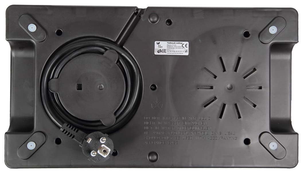 На нижней части базы можно увидеть резиновые ножки, препятствующие скольжению, отсек для хранения (намотки) шнура питания и вентиляционные отверстия.