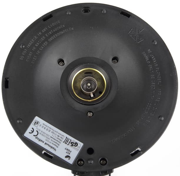 Разъем для установки заварочного кувшина выполнен в виде углубления с пластиковым кольцом. Снизу можно увидеть датчик температуры и предупреждение о высокой температуре (снизу находится нагревательный элемент).