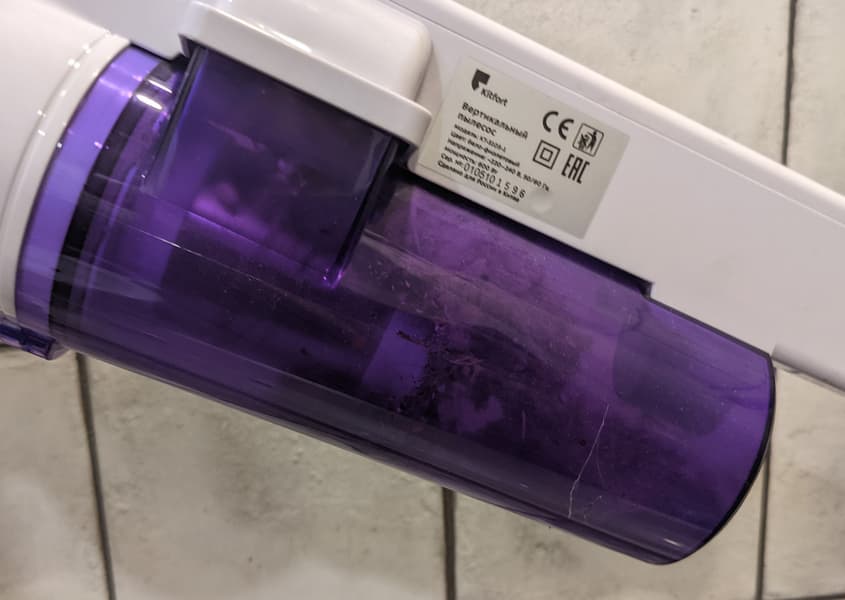 Положения для парковки у этой модели нет, поэтому при паузах в уборке прибор приходится класть на пол. Производитель не рекомендует опирать его на вертикальные поверхности — стены или мебель — из-за опасности падения.