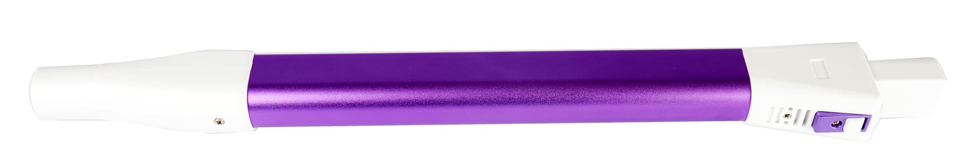 Удлинительная трубка длиной 57 см фиксируется на моторном блоке защелкой. Разъем для подключения напольной насадки гладкий, без фиксаторов.